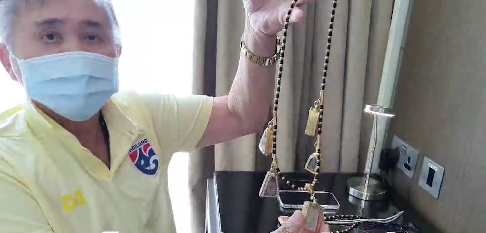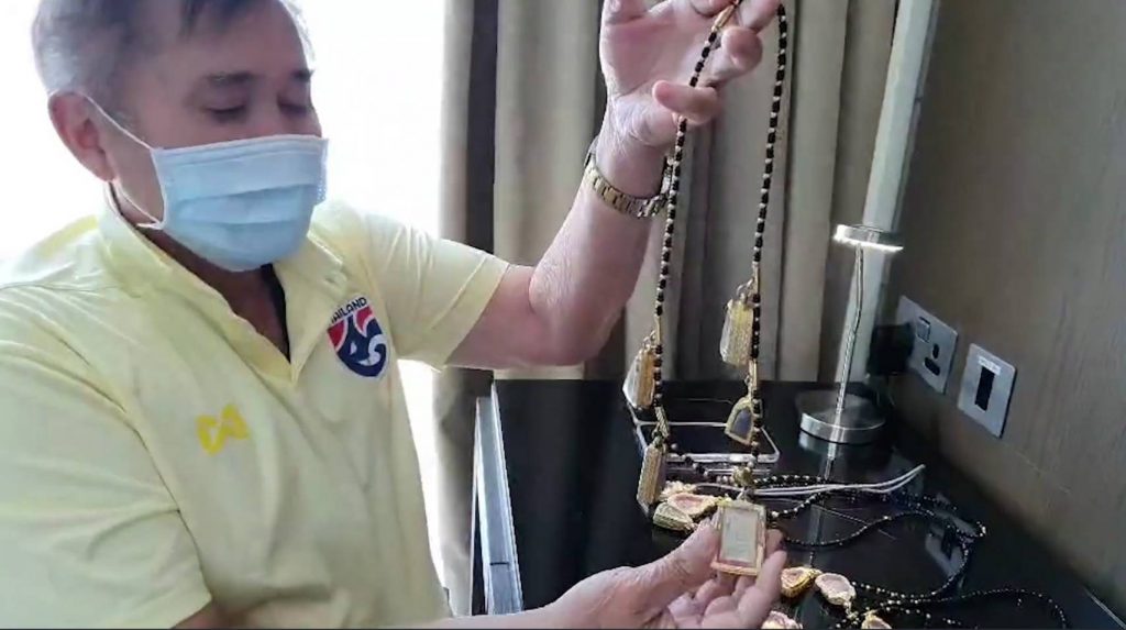 นาย สุทิน บัวตูม ผจก.ทีมฟุตซอลทีมชาติไทย เผยความลับได้นำสิ่งศักดิ์สิทธิ์ติดตัวไปเป็นเครื่องยึดเหนี่ยวจิตใจจนได้ความสำเร็จกับการได้ตั๋วไปเล่นฟุตซอลโลก2021