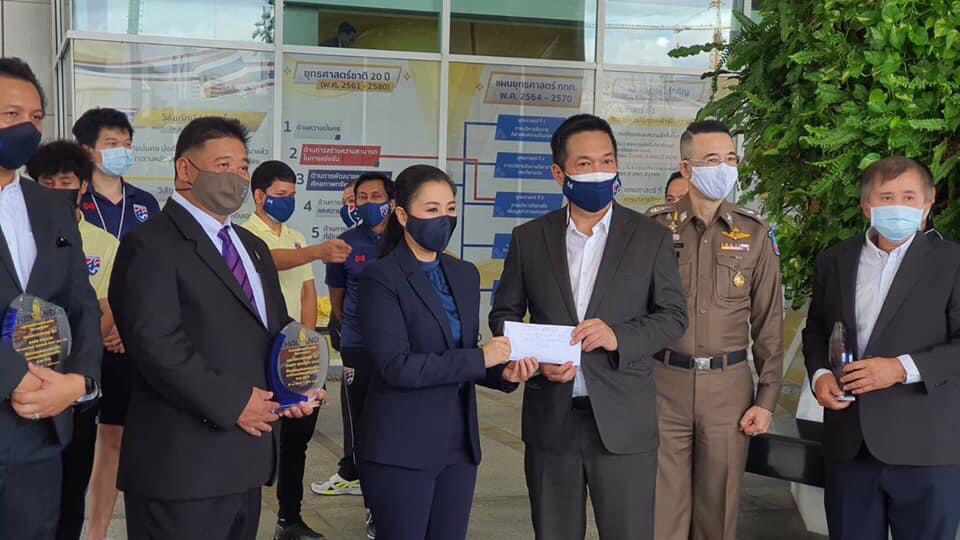 9 มิ.ย.64-ที่อาคารเฉลิมพระเกียรติฯ การกีฬาแห่งประเทศไทย หัวหมาก ทีมฟุตซอลทีมชาติไทย ที่สามารถสร้างผลงานไปลุยศึกฟุตซอลชิงแชมป์โลกได้เป็นสมัยที่ 6 ก็ได้รับเงินอัดฉีดก้อนแรกแล้ว โดยเป็นกลุ่มเพื่อนสุทิน บัวตูม ผู้จัดการทีมที่ร่วมลงขันให้เป็นจำนวน 1,300,000 บาท โดยมี”บิ๊กป๋อม”อดิศักดิ์ เบ็ญจศิริวรรณ อุปนายกสมาคมฟุตบอลแห่งประเทศไทย และประธานพัฒนาฟุตซอลและฟุตบอลชายหาด เป็นตัวแทนรับ