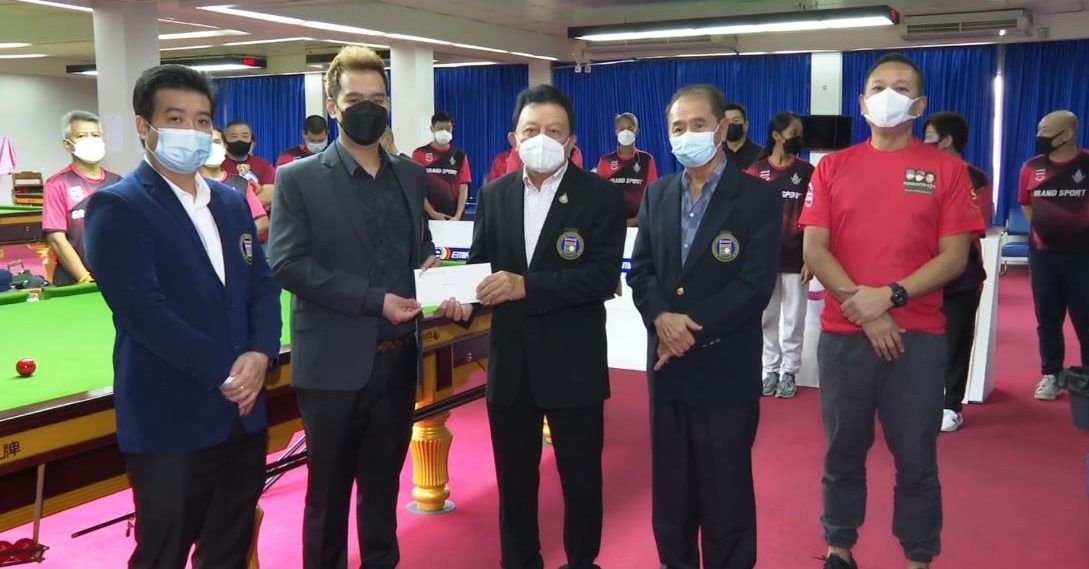 นายสุนทร จารุมนต์ นายกสมาคมกีฬาบิลเลียดแห่งประเทศไทย พร้อมด้วยนายศักดา รัตนสุบรรณ อุปนายกสมาคมฯ และ “ต๋อง ศิษย์ฉ่อย” วัฒนา ภู่โอบอ้อม กรรมการบริหารสมาคมฯ ร่วมมอบเงินอัดฉีด 2 แสนบาท ให้กับ “หมู ปากน้ำ” นพพล แสงคำ นักสนุกเกอร์อาชีพโลก หลังสร้างผลงานผ่านเข้ารอบ 16 คนสุดท้าย ในศึกสนุกเกอร์ชิงแชมป์โลก ปี 2020 ที่ครูซิเบิลเธียเตอร์ ประเทศอังกฤษ ก่อนแพ้ให้กับ มาร์ก เซลบี อดีตแชมป์โลก 3 สมัย 12-13 เฟรม