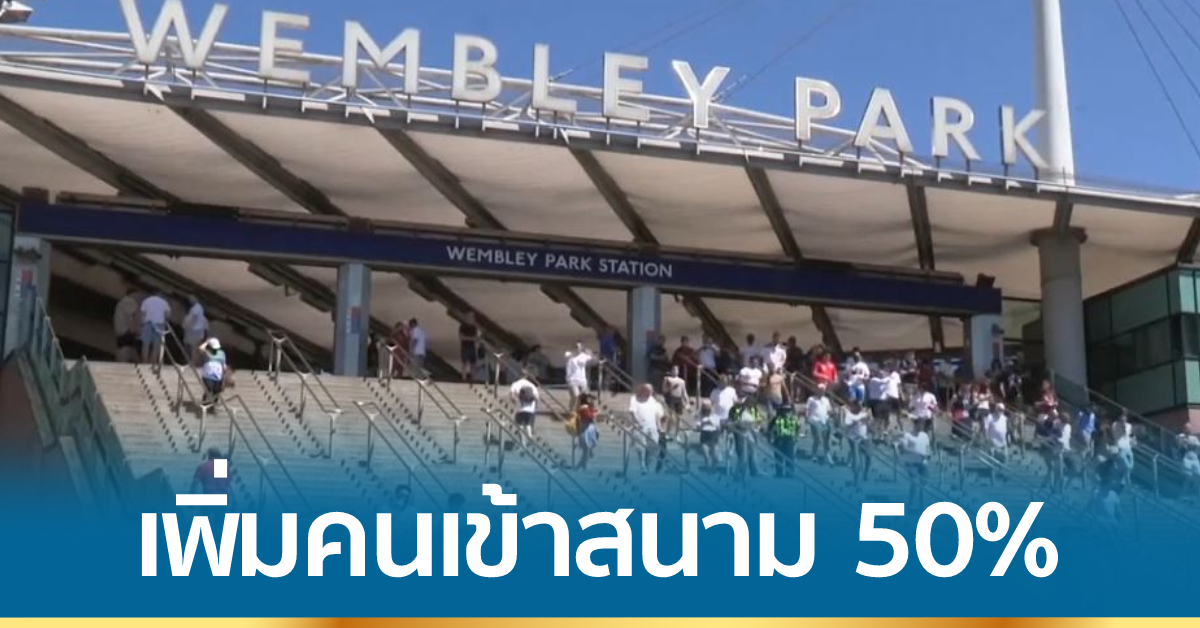 อังกฤษ 15 มิ.ย. – รัฐบาลอังกฤษผ่อนผันมาตรการล็อกดาวน์สำหรับสนามกีฬากลางแจ้ง โดยศึกฟุตบอลยูโร 2020 เมื่อเข้าสู่รอบ 16 ทีมเป็นต้นไป จะอนุญาตให้ผู้ชมเข้าสนามได้ 50 เปอร์เซ็นต์ หรือราว 45,000 ที่นั่ง