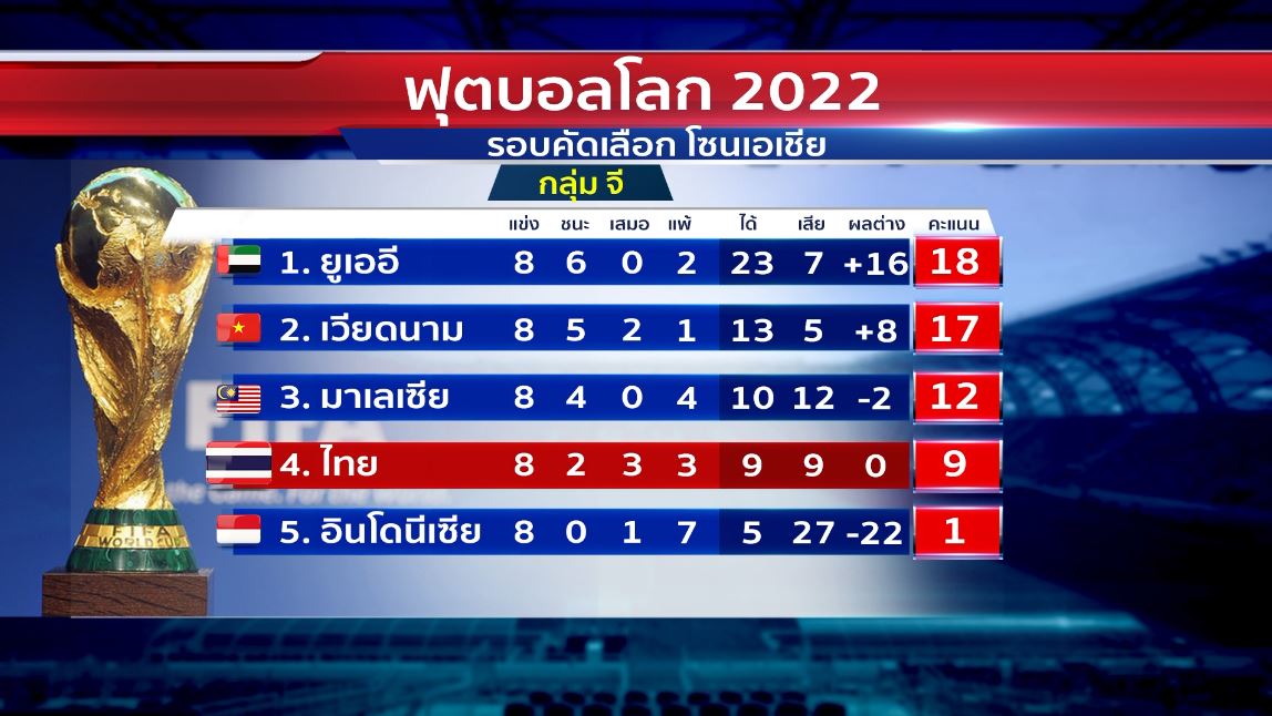 ฟุตบอลโลก 2022 รอบคัดเลือก โซนเอเชีย รอบ 2 กลุ่มจี ที่ประเทศสหรัฐอาหรับเอมิเรตส์ นัดที่ 8 นัดสุดท้าย ที่อัลมัคตูมสเตเดียม ทีมชาติไทย พบ มาเลเซีย โดยทั้งสองทีมหมดลุ้นเข้ารอบ 12 ทีมสุดท้ายไปแล้ว ต่างมี 9 แต้ม
