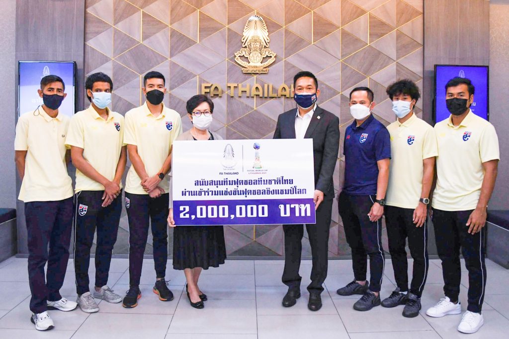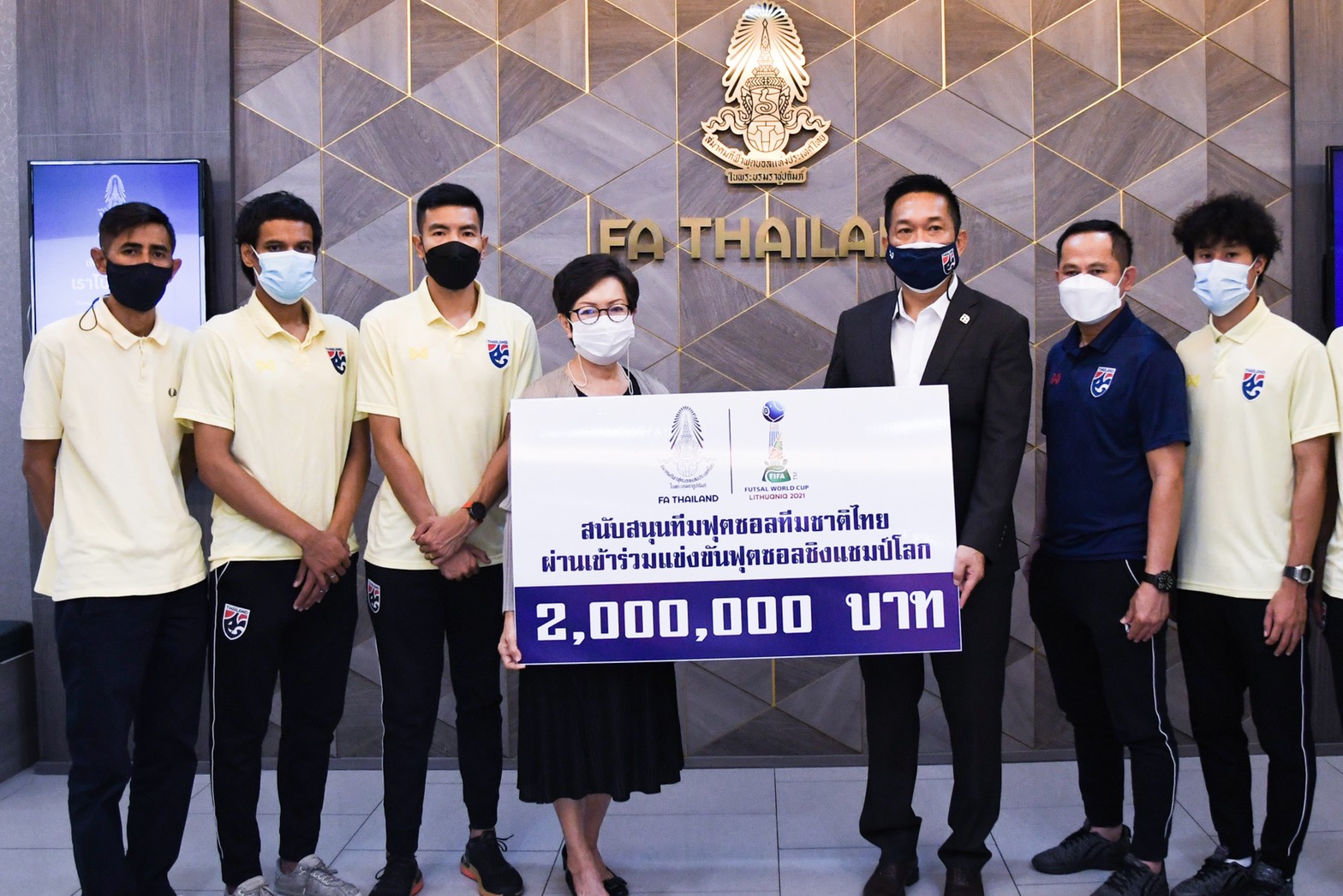 18 มิ.ย.64- ที่ทำการสมาคมฯ สมาคมกีฬาฟุตบอลแห่งประเทศไทยฯ ได้มอบเงินสร้างขวัญกำลังใจให้กับฟุตซอลทีมชาติไทย ที่ผ่านเข้าไปเล่นฟุตซอลโลก 2021 รอบสุดท้าย ที่ประเทศลิทัวเนีย ซึ่งเป็นการผ่านเข้าไปเล่นฟุตซอลชิงแชมป์โลก เป็นสมัยที่ 6 โดยมี ดร. ลัขณานันท์ ลักษมีธนานันต์ อุปนายกสมาคมฯฝ่ายบัญชีและการเงิน เป็นตัวแทนมอบเงินจำนวน 2,000,000 บาท ให้กับ คุณอดิศักดิ์ เบ็ญจศิริวรรณ อุปนายกสมาคมกีฬาฟุตบอลแห่งประเทศไทยฯ ฝ่ายพัฒนาฟุตซอลและฟุตบอลชายหาด รวมถึงนักฟุตซอลทีมชาติไทย