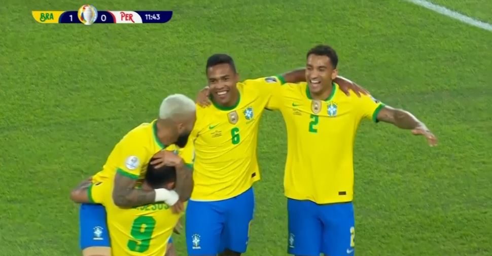 ฟุตบอลโกปา อเมริกา รอบแบ่งกลุ่ม กลุ่มบี ที่สนามเอสตาดิโอ โอลิมปีโก นิลตอน ซานโตส, รีโอ เดอ จาเนยโร บราซิล ที่มี 3 แต้ม พบกับ เปรู เปิดฉากมาเจ้าภาพ มาได้ประตูขึ้นนำนาทีที่ 12 จากบอลเปิดทางซ้ายเข้าเขตโทษ มาร์กอส โลเปซ โหม่งสกัดบอลเลยไปเสาสอง กาเบรียล เชซุส ตวัดเข้ากลาง อเล็กซ์ ซานโดร สอดมายิงด้วยขวาตรงกรอบหกหลาเข้าไปเป็น 1-0