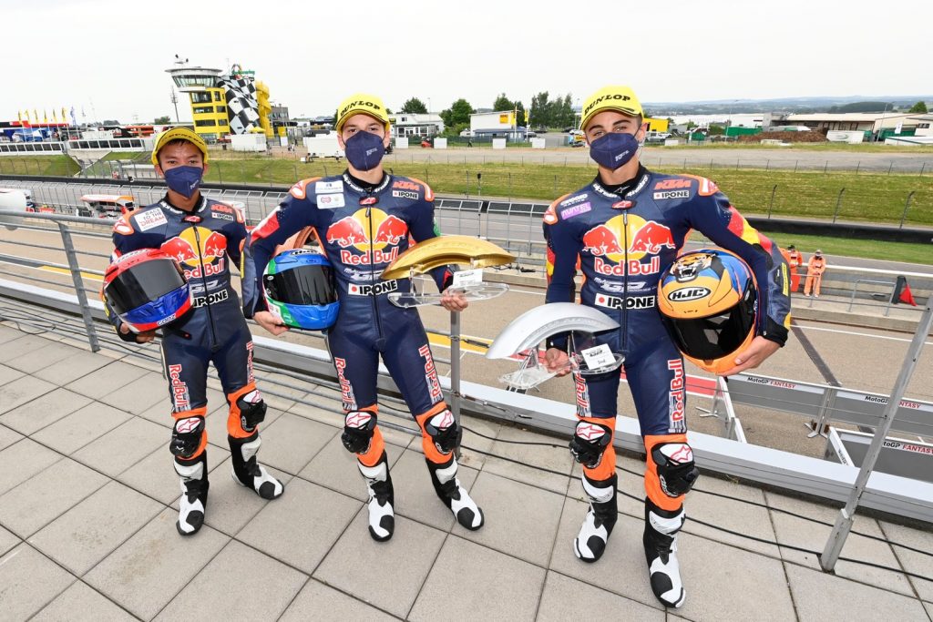 21 มิ.ย.64-ศึกรถจักรยานยนต์ทางเรียบดาวรุ่งชิงแชมป์โลก รายการ เรดบูล โมโตจีพี รุกกีส์ คัพ 2021 สนาม 4 ดวลความเร็วเรซที่ 2 เมื่อคืนวันอาทิตย์ที่ผ่านมา ที่ซัคเซนริง เซอร์กิต ประเทศเยอรมนี โดยถูกบรรจุเป็นซัพพอร์ทเรซของ โมโตจีพีรายการ เยอรมัน กรังด์ปรีซ์ ชิงชัยทั้งสิ้น 19 รอบสนาม
