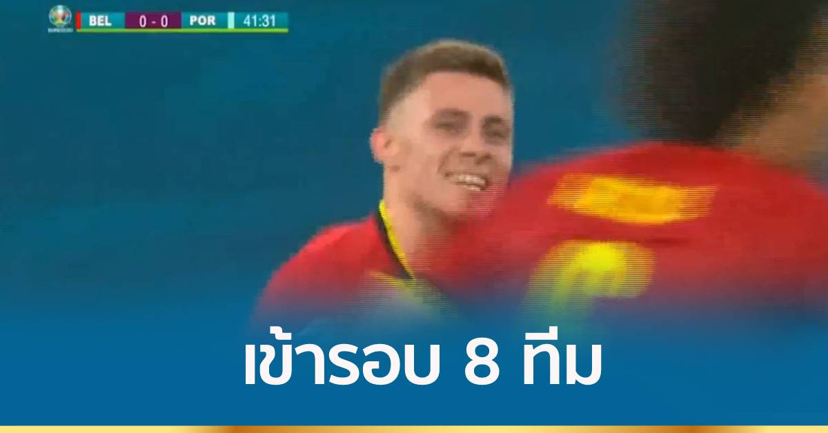 ฟุตบอลยูโร 2020 รอบ 16 ทีมสุดท้าย คู่บิ๊กแมตช์เมื่อคืนที่ผ่านมา ปีศาจแดงแห่งยุโรป เบลเยียม ชุดแดง พบทีมฝอยทอง โปรตุเกส แชมป์เก่า ที่นำทีมโดย คริสเตียโน โรนัลโด ที่มีลุ้นทำสถิติยิงประตูสูงสุดในนามทีมชาติแซง อาลี ดาอี ของอิหร่าน ที่ยิงได้ 109 ประตูเท่ากัน แต่นัดนี้กลับเป็นเบลเยียมที่มาได้ประตูชัยจากจังหวะที่ โธมัส เมอร์นิเยร์ ไหลให้ ธอร์กาน อาซาร์ จับบอลก่อนล็อกเข้าขวาซัดเต็มข้อเข้าไปนาทีที่ 42 ช่วยให้เบลเยียม เฉือนชนะไปได้ 1-0 ผ่านเข้ารอบ 8 ทีมสุดท้ายไปพบ อิตาลี ในคืนวันที่ 2 กรกฎาคมนี้