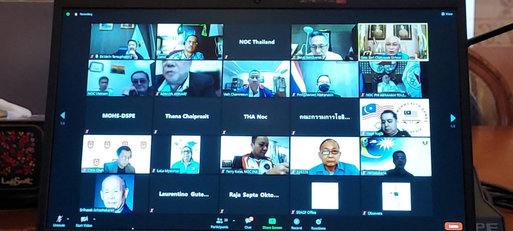 8 มี.ค.64-ดาโต๊ะ ซรี ชัยภักดิ์ ศิริวัฒน์ ซีโอโอของสำนักงานสหพันธ์กีฬาซีเกมส์ เป็นประธานประชุมมนตรีซีเกมส์ผ่านการประชุมทางไกล โดยมี พล.ต.จารึก อารีราขการัณย์ รองประธานและเลขาธิการคณะกรรมการโอลิมปิกแห่งประเทศไทย ศ.เจริญ วรรธนะสิน นพ.วารินทร์ ตัณฑ์ศุภศิริ มนตรีซีเกมส์ของไทย นายธนา ไชยประสิทธิ์ เหรัญญิกคณะกรรมการโอลิมปิกแห่งประเทศไทย และ มนตรีซีเกมส์ 11 ชาติ เข้าร่วมประชุม เพื่อพิจารณากรณีเวียดนาม ทื่จะเป็นเจ้าภาพซีเกมส์ ครั้งที่ 31 จะขอเลื่อนจัดการแข่งขัน จากวันที่ 21 พ.ย. – 2 ธ.ค. 2564 ออกไปเป็นเดือน เม.ย. หรือ พ.ค. 2565