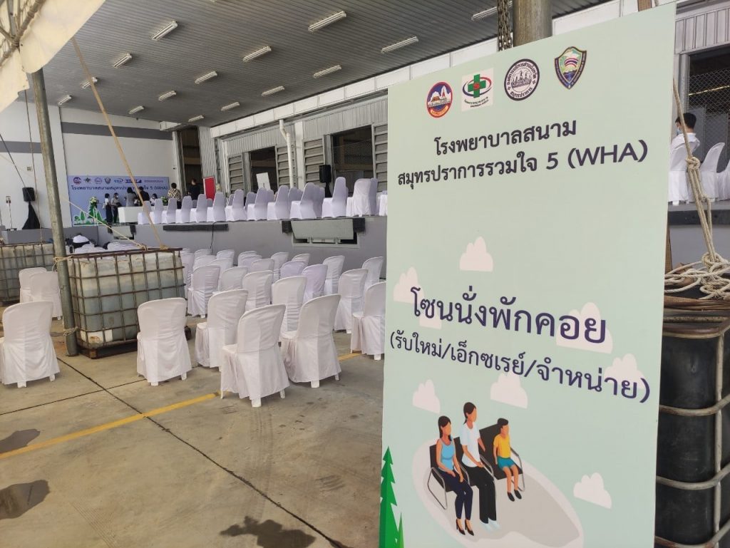สำหรับโรงพยาบาลสนามสมุทรปราการรวมใจ 5 (WHA) ตั้งอยู่ที่คลังสินค้าโครงการ WHA Mega Logistic Center ชลหารพิจิตร กม.4 หมู่ 7 ตำบลบางปลา อำเภอบางพลี จังหวัดสมุทรปราการ