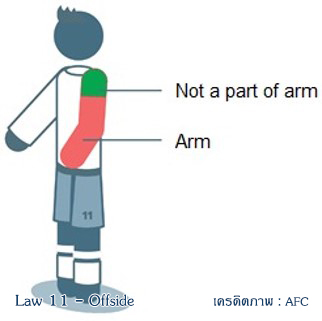 •ตามที่ระบุในกติกา ข้อ 12 คำจำกัดความของปลายแขน คือด้านล่างของรักแร้ (bottom of the armpit) สำหรับวัตถุประสงค์ในการพิจารณาตำแหน่งล้ำหน้าหรือไม่ล้ำหน้า