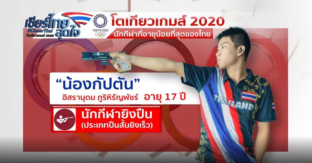 “น้องกัปตัน” อิสรานุดม ภูริหิรัญพัชร์ นักกีฬายิงปืนวัยเพียง 17 ปี ชาวโคราช กลายเป็นนักกีฬาไทยอายุน้อยที่สุดในการแข่งขันครั้งนี้ ส่วนนักกีฬาอายุมากที่สุดของไทยเป็น เศวต เศรษฐาภรณ์ นักกีฬายิงเป้าบินชาย อายุ 58 ปี และเป็นคนแรกของนักกีฬาไทยที่ได้โควตาโอลิมปิกเกมส์ 2020 ขณะที่ทัพนักกีฬาไทยที่ได้เข้าร่วมมากที่สุดเป็นกีฬาแบดมินตันถึง 7 คน