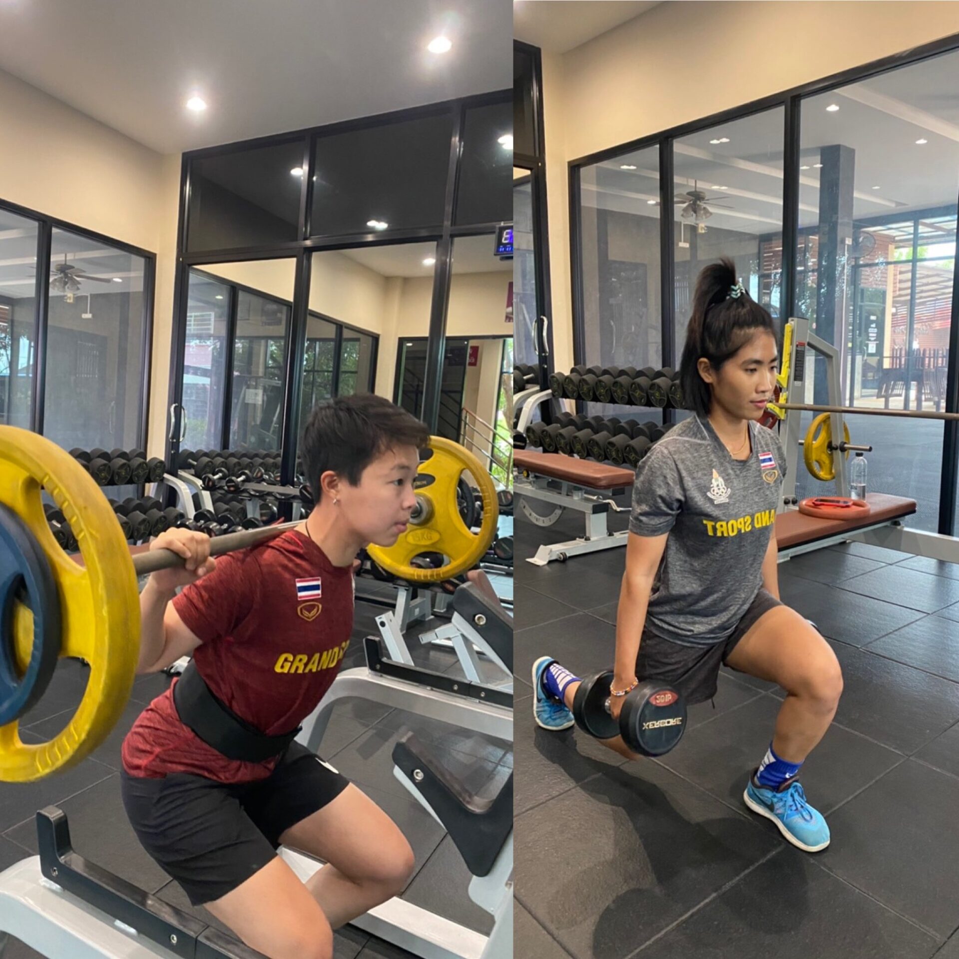 20 ก.ค.64-“น้องฟ้า” ชุติกาญจน์ กิจวานิชเสถียร กับ “มิ้ง” วรัญญา แซ่แต้ 2 นักกีฬาจักรยานบีเอ็มเอ็กซ์ทีมชาติไทย เสริมสร้างพละกำลังด้วยการเล่นฟิตเนส ตามแผนการฝึกซ้อมของ อดัม แครี่ย์ ผู้ฝึกสอนชาวออสเตรเลีย เพื่อเตรียมเดินทางไปแข่งขันกีฬาโอลิมปิกเกมส์ 2020 ที่ประเทศญี่ปุ่น ในวันที่ 21 ก.ค.64 นี้-สำนักข่าวไทย