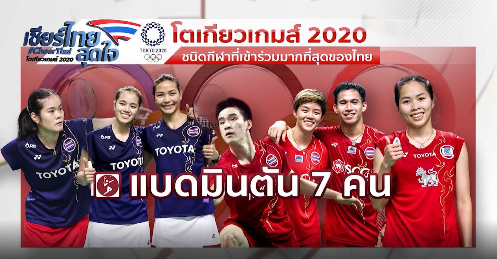 แบดมินตันเป็นอีก 1 ชนิดกีฬาที่ถูกตั้งความหวังในการคว้าเหรียญรางวัลในโอลิมปิกเกมส์ 2020 โตเกียวเกมส์ ที่กำลังจะเปิดฉากขึ้นในวันศุกร์ที่ 23 กรกฎาคมนี้ หลังจากที่ได้ 7 สุดยอดนักแบดทีมชาติไทยไปลุยโตเกียวเกมส์ครั้งนี้ ได้แก่ “น้องเมย์” รัชนก อินทนนท์, “น้องครีม” บุศนันทน์ อึ๊งบำรุงพันธ์ ประเภทหญิงเดี่ยว , “กัน” กันตภณ หวังเจริญ ประเภทชายเดี่ยว, “กิ๊ฟ” จงกลพรรณ กิติธรากุล และ “วิว” รวินดา ประจงใจ ประเภทหญิงคู่ และ “บาส” เดชาพล พัววรานุเคราะห์ กับ “ปอป้อ” ทรัพย์สิรี แต้รัตนชัย ประเภทคู่ผสม