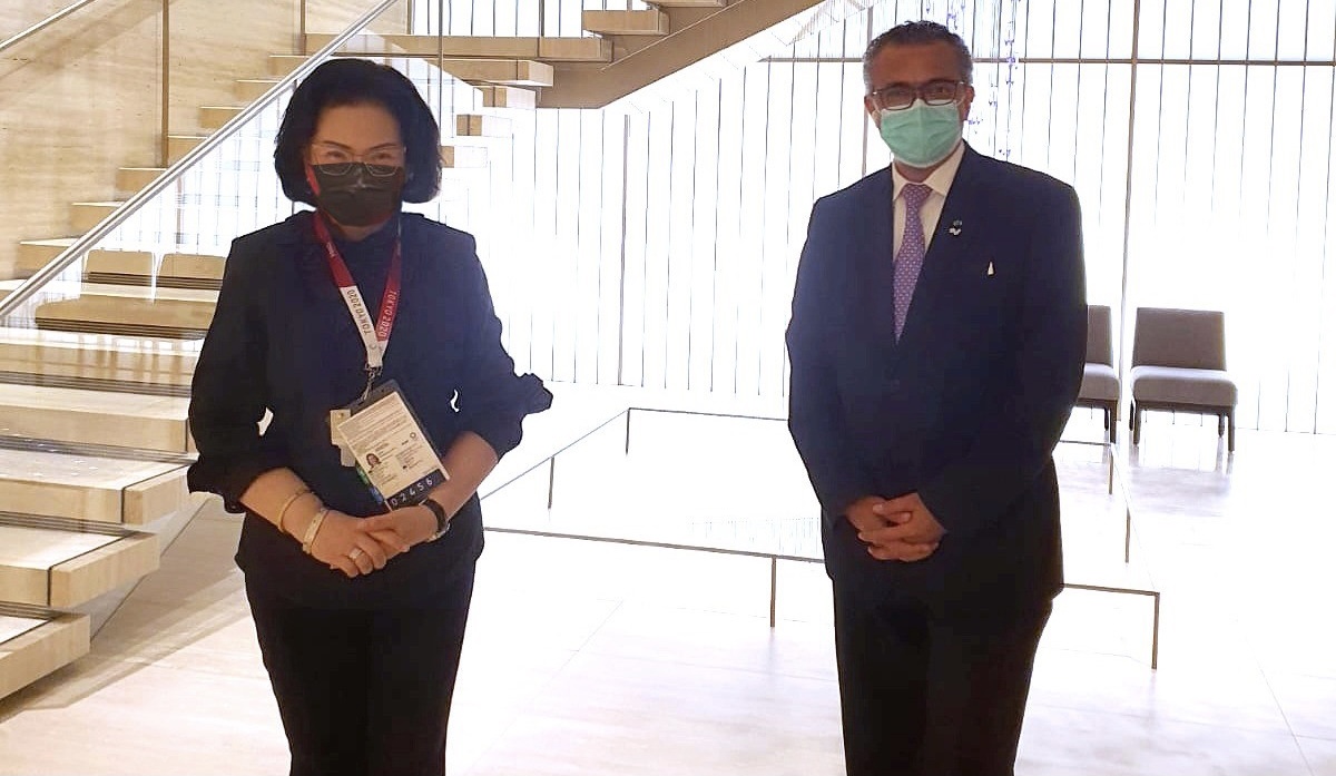 22 ก.ค.64-คุณหญิงปัทมา ลีสวัสดิ์ตระกูล กรรมการคณะกรรมการโอลิมปิกสากล ไอโอซี ต้อนรับ นายทีโดรส อัคฮานอม กรีเบรเยซุส ผู้อำนวยการองค์การอนามัยโลก (WHO) กล่าวให้กำลังใจนักกีฬา,ไอโอซีและเจ้าภาพ โอลิมปิกญี่ปุ่น ขอให้ร่วมใจสู้โควิด-19 ผ่านพ้นไปด้วยกัน ณ ห้องประชุมใหญ่ไอโอซี  ครั้งที่ 138  รร.โอกุระ โตเกียว-สำนักข่าวไทย
