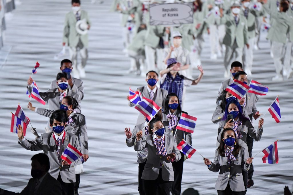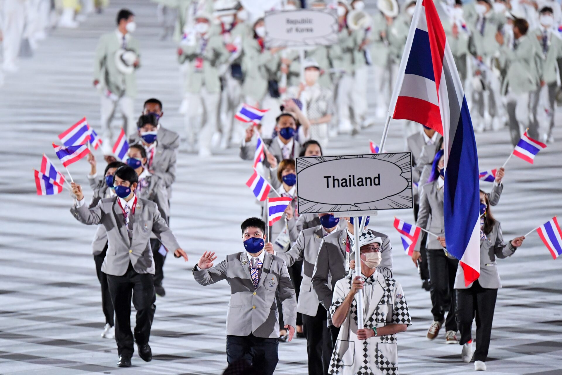 การเดินขบวนพาเหรดของนักกีฬาจาก 205 ประเทศยึดหลักความเสมอภาคทางเพศ ด้วยการให้นักกีฬาชาย-หญิงเป็นผู้ถือธงชาติของตนเองนำหน้าขบวนพาเหรดเข้าสู่สนามซึ่งทัพนักกีฬาไทยเดินพาเหรดเข้าสู่สนามในลำดับที่ 102 ตามตัวอักษรของญี่ปุ่น โดย‘เอิน’ ณภัสวรรณ หย่างไพบูลย์ นักยิงปืนหญิง และ ‘แซม’ เศวต เศรษฐาภรณ์ นักกีฬายิงปืนเป้าบินชาย เป็นผู้ถือธงชาติไทยเข้าสู่สนาม ขณะที่ทัพนักกีฬาญี่ปุ่น เจ้าภาพเดินพาเหรดปิดท้ายขบวน