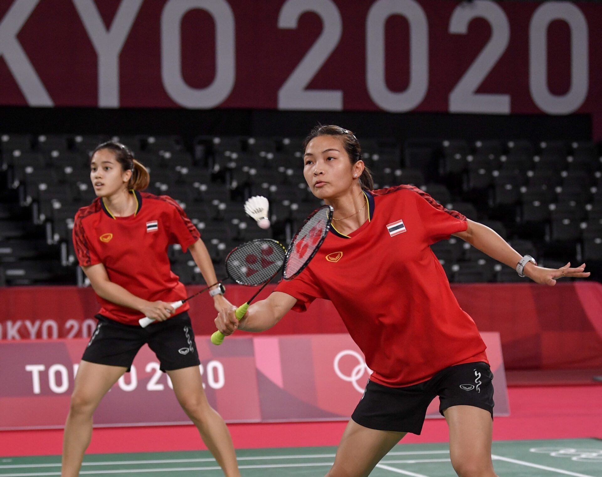 27 ก.ค.64-การแข่งขันแบดมินตันกีฬาโอลิมปิกเกมส์ 2020 ที่สนามมูซาชิโนะ ฟอเรสต์ สปอร์ต พลาซ่า ในกรุงโตเกียว ประเทศญี่ปุ่น ประเภทหญิงคู่ กลุ่มบี แมตช์ที่สาม”กิ๊ฟ” จงกลพรรณ กิติธารากุล กับ “วิว” รวินดา ประจงใจ คู่มืออันดับ 9 ของโลก พ่ายให้กับ กาเบรียล่า กับ สเตฟานี่ สโตเอว่า คู่มืออันดับ 8 ของโลกจากบัลแกเรีย ไป 1-2 เกม 11-21,21-16,21-17 ใช้เวลาแข่งชัน 59 นาที จบรอบแบ่งกลุ่มนี้ กิ๊ฟ จงกลพรรณ กับ วิว รวินดา แพ้ 3 แมตช์รวดรั้งอันดับสุดท้ายของกลุ่ม-สำนักข่าวไทย