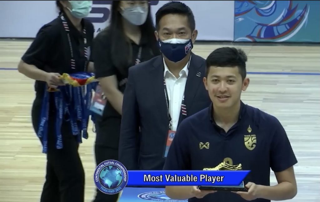 โดยมี นาย เปโดร เมนเดส แมตช์คอมมิสชั่นเนอร์จากสเปน พร้อมด้วย “บิ๊กป๋อม”อดิศักดิ์ เบ็ญจศิริวรรณ อุปนายกสมาคมกีฬาฟุตบอลฯ และ ประธานพัฒนาฟุตซอลและฟุตบอลชายหาดทีมชาติไทย รวมถึง “บิ๊กสุ”สุทิน บัวตูม ผู้จัดการทีมฟุตซอลทีมชาติไทยร่วมมอบรางวัลต่างๆในพิธีปิด