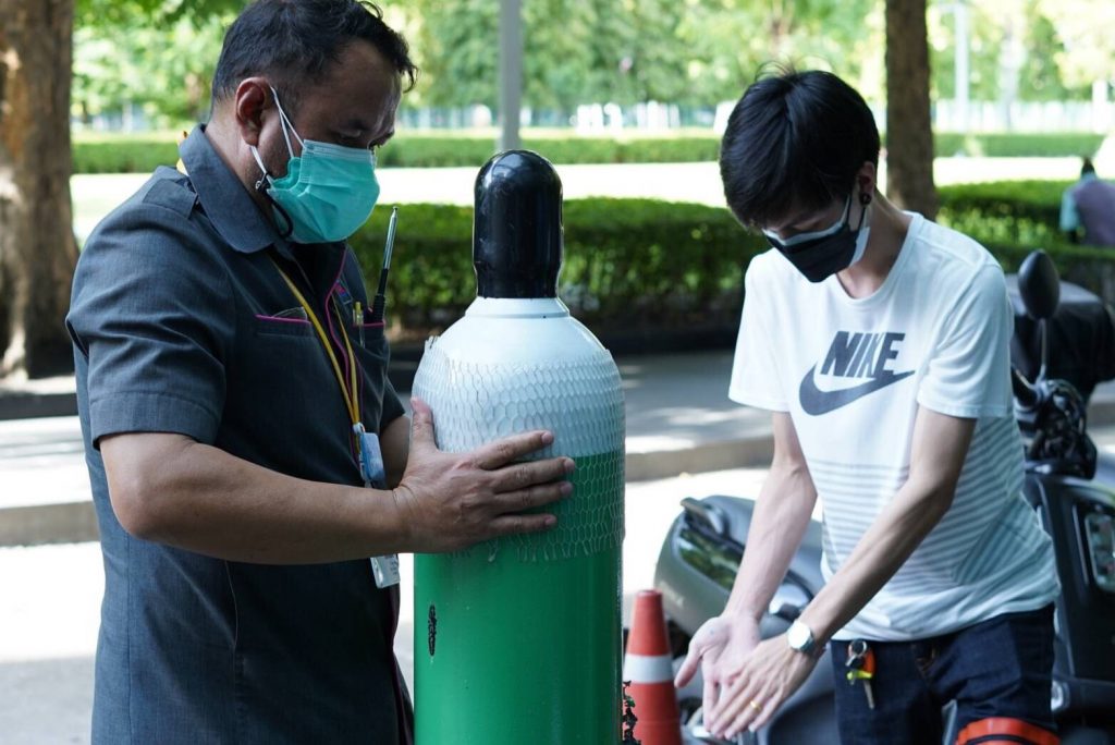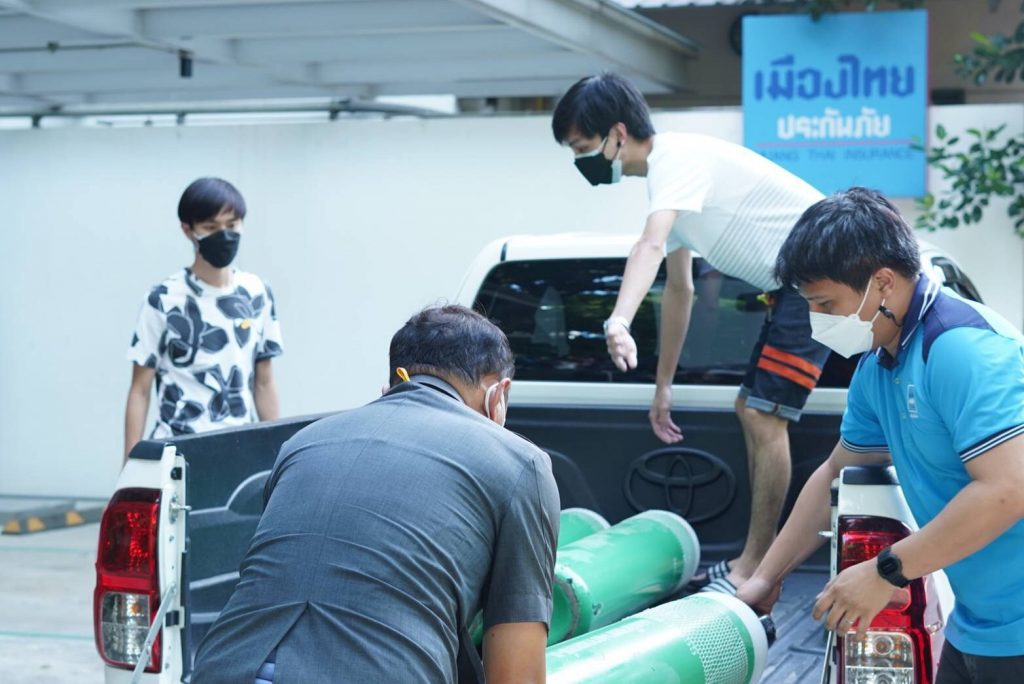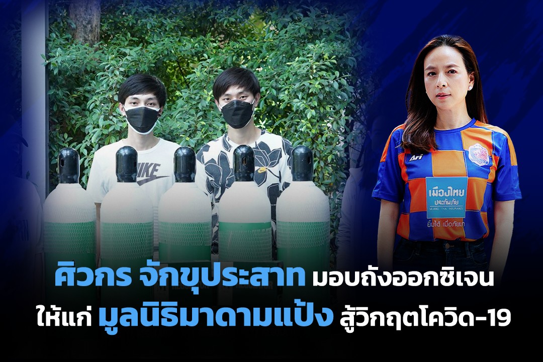 กรุงเทพฯ 11 ส.ค.64- “ศิวกร จักขุประสาท” นักฟุตบอลสโมสรการท่าเรือ เอฟ.ซี. พร้อมด้วยครอบครัวจักขุประสาทส่งมอบถังออกซิเจนจำนวน 5 ถัง เพื่อใช้ในศูนย์พักคอยช่วยเหลือผู้ป่วยโควิด-19 แก่มูลนิธิมาดามแป้ง โดย “มาดามแป้ง” นวลพรรณ ล่ำซำ หลังสูญเสียคุณยายจากไวรัสโควิด-19 ในช่วงสถานการณ์ที่มีผู้ติดเชื้อเพิ่มขึ้นอย่างต่อเนื่อง
