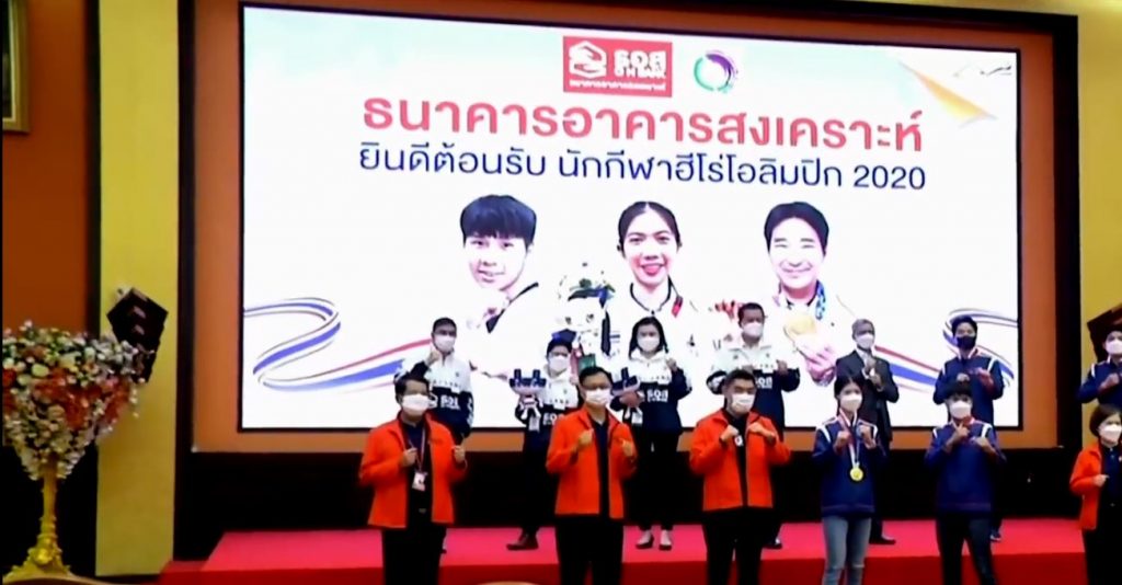 นายยุทธนา หยิมการุณ อธิบดีกรมธนารักษ์ ในฐานะประธานกรรมการ ธนาคารอาคารสงเคราะห์ (ธอส.) พร้อมด้วยนายฉัตรชัย ศิริไล กรรมการผู้จัดการ ธอส. จัดงานต้อนรับนักกีฬาฮีโร่โอลิมปิก ทีมเทควันโด ให้กับ “น้องเทนนิส” เรืออากาศตรีหญิงพาณิภัค วงศ์พัฒนกิจ ที่สร้างประวัติศาสตร์ คว้าเหรียญทองจากการแข่งขันเทควันโดรุ่น 49 กก. หญิงโอลิมปิกเกมส์ 2020
