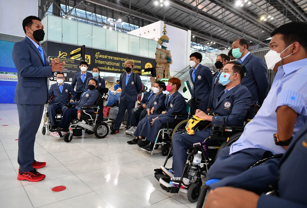สนามบินสุวรรณภมิ 20 ส.ค.64-ทัพนักกีฬาพาราทีมชาติไทยชุดสาม ซึ่งทีมนักกีฬาบอคเซีย อีกหนึ่งกีฬาความหวังของไทย นำโดย วัชรพล วงษา เจ้าของ 2 เหรียญทองพาราลิมปิกเกมส์ 2016” พร้อมด้วย สตาฟฟ์โค้ช และ เจ้าหน้าที่ รวมทั้งสิ้น 21คน โดยมี พลโทอิสระ วัชรประทีป ที่ปรึกษาผู้ว่าการการกีฬาแห่งประเทศไทย, นายยุธยา จีนหีต ผู้อำนวยการสำนักผู้ว่าการ พร้อมด้วยนายอนุสรณ์ พิมงา เลขาธิการสมาคมกีฬาคนพิการทางสมองแห่งประเทศไทย ได้ถ่ายรูปร่วมกันก่อนออกเดินทาง ซึ่งทัพนักกีฬาไทยเดินทางโดยสายการบิน เจแปน แอร์ไลน์ เที่ยวบิน JL0034 ไปยังประเทศญี่ปุ่น