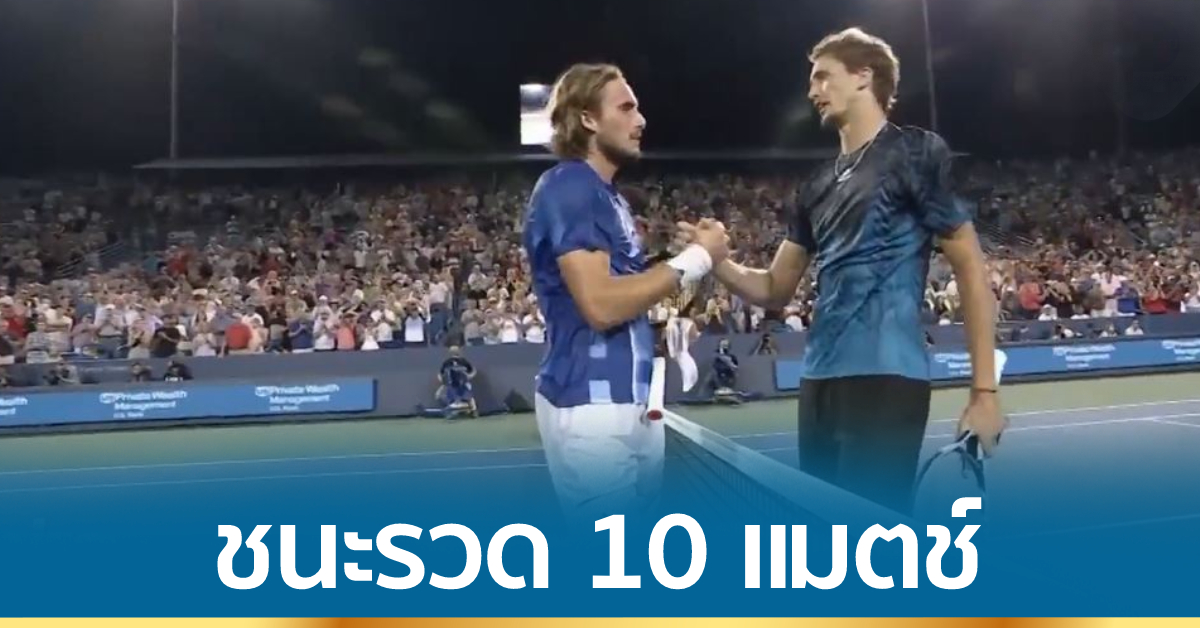 เทนนิสเอทีพีทัวร์ รายการเวสต์เทิร์น แอนด์ เซาเทิร์น โอเพ่น ที่ซินซินเนติ ประเทศสหรัฐอเมริกา ประเภทชายเดี่ยว รอบรองชนะเลิศ อเล็กซานเดอร์ ซเวเรฟ นักเทนนิสมือ 3 ของโลก ชนะ สเตฟานอส ซิตซิปาส นักหวดจากกรีซ 2-1 เซต 6-4, 3-6, 7-6 (7-4) ทำสถิติชนะรวด 10 แมตช์ติดต่อกัน