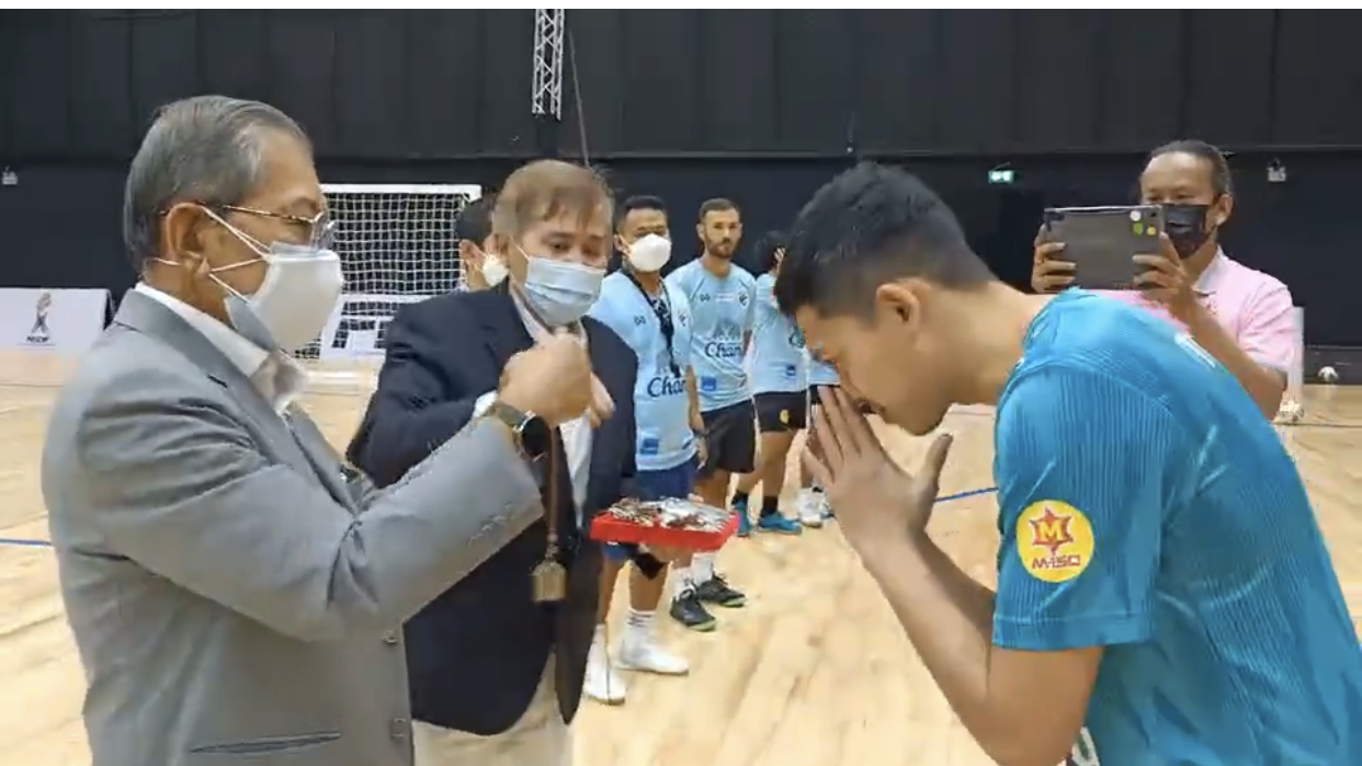 23 ส.ค.64 ทีมฟุตซอลไทยได้รับของการปลุกใจจาก “ศ.วิชา มหาคุณ” ประธานมูลนิธิต่อต้านการทุจริต พร้อมด้วย”บิ๊กสุ”สุทิน บัวตูม ผู้จัดการทีมฟุตซอลไทย และ”ท่านอดิศร ไชยคุปส์”รองอธิบดีอัยการฝ่ายพัฒนา สำนักงานอัยการสูงสุด ที่มอบ พระขุนแผนพรายกุมาร หลวงปู่ทิม อิสริโก วัดละหารไร่ รุ่นสร้างวาระพิเศษในการสร้างโบสถ์ ปี พ.ศ.2513-2515 ให้กับทีมฟุตซอลไทยทั้งคณะเพื่อเป็นขวัญและกำลังใจก่อนไปสู้ศึกฟุตซอลโลก2021