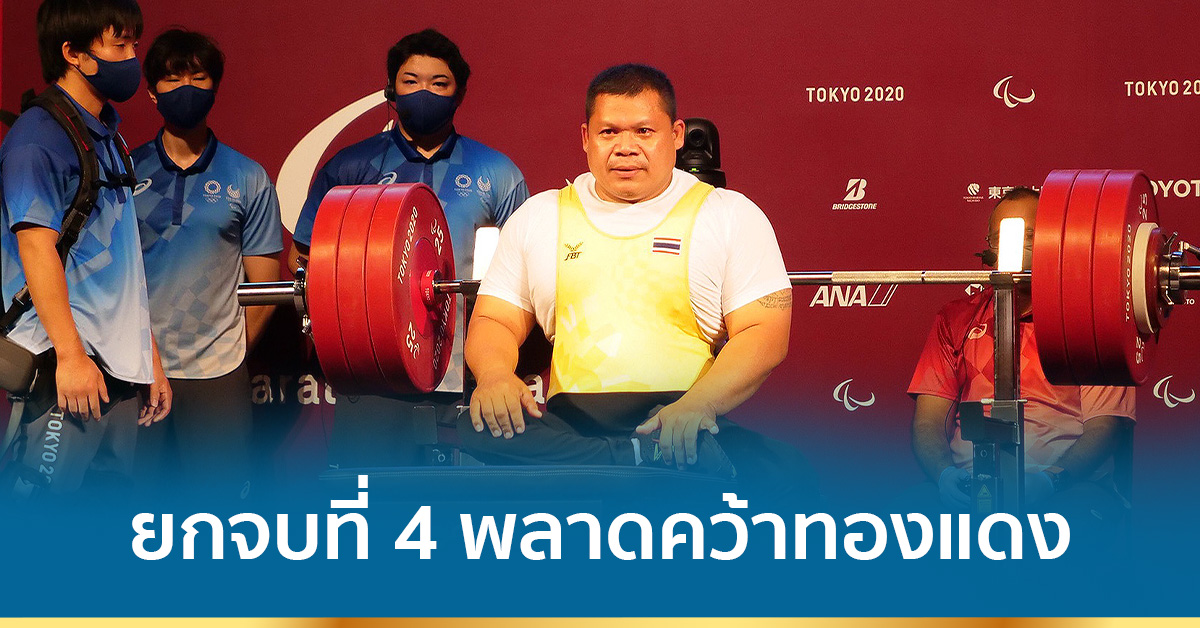 ญี่ปุ่น 28 ส.ค.- “ทองสา มารศรี” จอมพลังหนุ่มไทย ยกจบที่ 4 ในการแข่งขันกีฬายกน้ำหนัก “พาราลิมปิก โตเกียว 2020” พลาดเหรียญทองแดงไปอย่างน่าเสียดาย