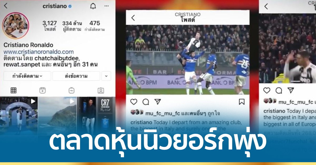 อังกฤษ 28 ส.ค. – คริสเตียโน โรนัลโด ย้ายกลับมาอยู่กับแมนเชสเตอร์ ยูไนเต็ด ส่งผลให้ตลาดหุ้นในนิวยอร์กทะยานขึ้นไปถึง 19.15 ดอลลาร์สหรัฐ