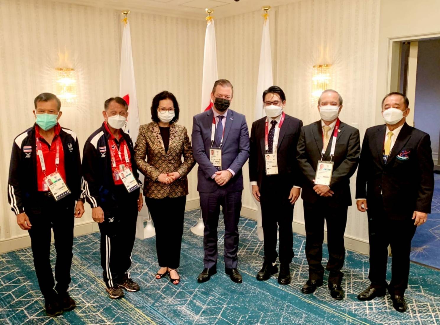 ญี่ปุ่น 3 ก.ย.64- คุณหญิงปัทมา ลีสวัสดิ์ตระกูล ไอโอซีเมมเบอร์ พร้อมด้วย ดร.ก้องศักด ยอดมณี ผู้ว่า กกท.,สิงห์ทอง ลาภพิเศษพันธุ์ เอกอัครราชทูต เข้าพบเพื่อเยี่ยมคารวะ แอนดรู พาร์สัน ไอโอซี และประธานคณะกรรมการพาราลิมปิกสากล เพื่อพูดคุยเรื่องแผนการพัฒนากีฬาคนพิการในประเทศไทย โดยมี พลตรีโอสถ ภาวิไล เลขาธิการคณกรรมการพาราลิมปิกแห่งประเทศไทยและคณะ ร่วมด้วย ณ รร. Grand Nikko Daiba กรุงโตเกียว ประเทศญี่ปุ่น.