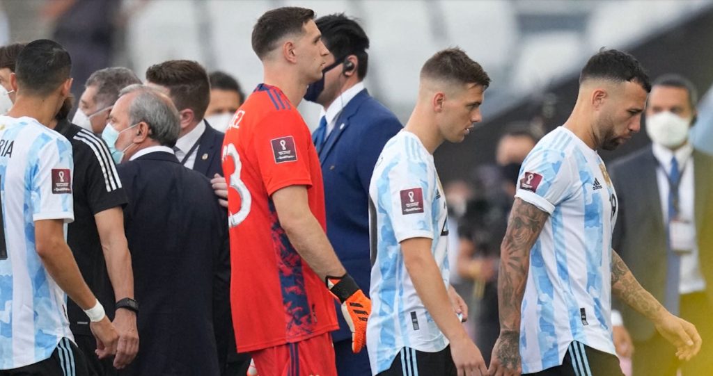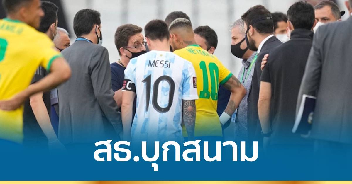 บราซิล 6 ก.ย.-ฟุตบอลโลก รอบคัดเลือก บราซิล พบ อาร์เจนติน่า ถูกยกเลิก หลังเจ้าหน้าที่สาธารณสุขบราซิล ลงไปในสนาม นำตัว 4 นักเตะค้าแข้งในพรีเมียร์ลีก อังกฤษ เข้ากักตัว