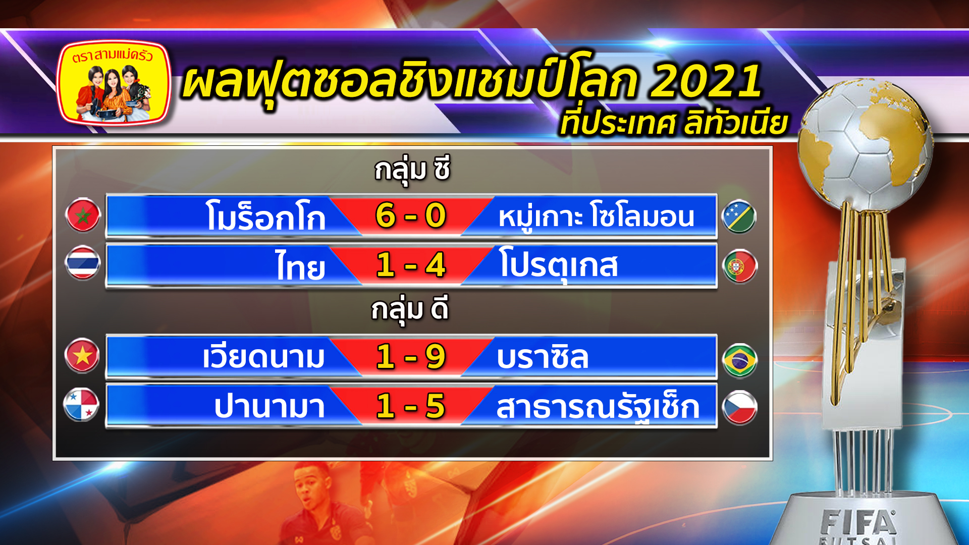 ลิทัวเนีย 14 ก.ย.- นักเตะโต๊ะเล็กไทย ประเดิมสนามนัดแรกพ่ายโปรเกตุเกส ในศึกฟุตซอลชิงแชมป์โลก โดยโค้ช “หมี” รักษ์พล สายเนตรงาม ยอมรับเสียดายแต่พร้อมแก้ไขเพื่อเตรียมรับมือโมร็อกโก นัดต่อไป