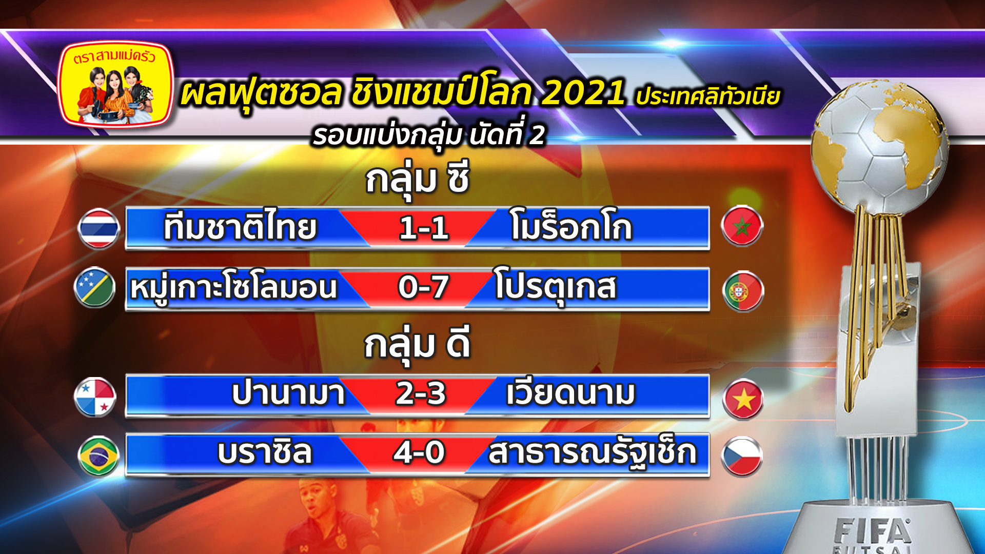 ลิทัวเนีย 17 ก.ย.- จิรวัฒน์ สอนวิเชียร ยิงประตูตามตีเสมอโมร็อกโก ช่วง 12 วินาทีสุดท้าย คว้า 1 คะแนนลุ้นเข้ารอบในนัดสุดท้ายกับหมู่เกาะโซโลมอน ในศึกฟุตซอลชิงแชมป์โลก