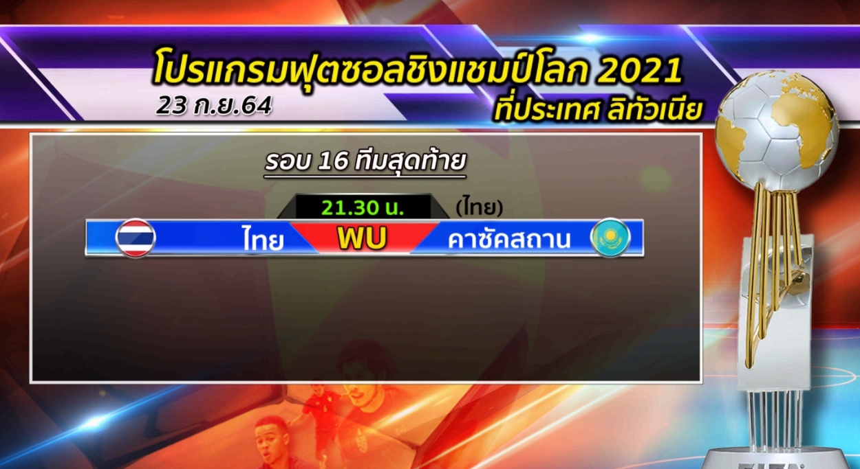 ลิทัวเนีย 22 ก.ย.- นักเตะโต๊ะเล็กทีมชาติไทย หวังสร้างประวัติศาสตร์เอาชนะ คาซัคสถาน ผ่านเข้ารอบ 8 ทีมสุดท้ายสมัยแรกในศึกฟุตซอลชิงแชมป์โลก 2021