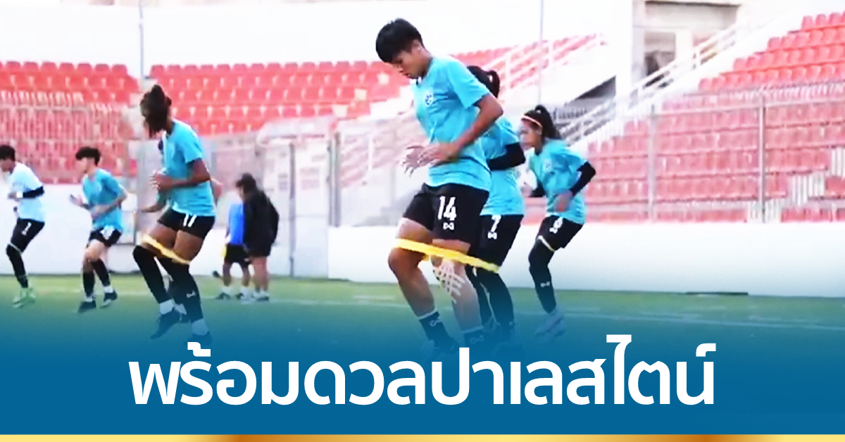 นักฟุตบอลหญิงทีมชาติไทย ลงสนามฝึกซ้อมครั้งสุดท้าย ที่สนามไฟซอล อัล ฮุสเซนี ประเทศปาเลสไตน์ เพื่อเตรียมความพร้อมลงแข่งขันฟุตบอลหญิงชิงแชมป์เอเชีย รอบคัดเลือก นัดสุดท้าย พบ ทีมชาติปาเลสไตน์