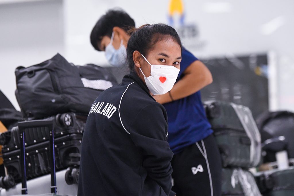 ท่าอากาศยานนานาชาติสุวรรณภูมิ 27 ก.ย.64-ฟุตบอลหญิงทีมชาติไทย เดินทางถึงประเทศไทยเป็นที่เรียบร้อยแล้ว หลังจากเสร็จสิ้นภารกิจเข้าร่วมการแข่งขันฟุตบอลหญิงชิงแชมป์เอเชีย รอบคัดเลือก ที่ปาเลสไตน์ และจะเดินทางไปยัง โรงแรมกักตัว ทันที (State Quarantine) หลังจาก“ทัพชบาแก้ว”สามารถเข้ารอบสุดท้าย ได้ตามเป้าหมาย ด้วยการเอาชนะได้ 2 นัดรวด เก็บได้ 6 คะแนนเเต็ม (ชนะ มาเลเซีย 4-0 และ ชนะ ปาเลสไตน์ 7-0)