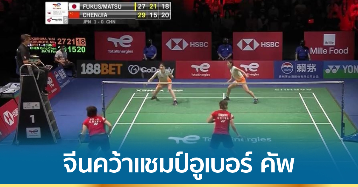 แบดมินตันประเภททีมชิงแชมป์โลก “โธมัส-อูเบอร์ คัพ 2020” ที่ประเทศเดนมาร์ก ประเภททีมหญิง รอบชิงชนะเลิศ ระหว่างทีมชาติจีน พบกับ ญี่ปุ่น หญิงเดี่ยวมือ 1 เฉิน ยู่เฟย เจ้าของแชมป์โอลิมปิก มือ 2 ของโลกจากจีน พลาดท่าพ่ายให้กับ อากาเนะ ยามากูชิ มือ 5 ของโลก 0-2 เกม 18-21 และ 10-21 ทำให้ญี่ปุ่นนำก่อน 1-0 คู่ แต่อีก 3 คู่ต่อมาเป็นสาวจีนที่เป็นฝ่ายเก็บชัยชนะได้ทั้งหมด ทำให้ทีมชาติจีนเอาชนะญี่ปุ่น 3-1 คู่ คว้าแชมป์ไปครอง ส่วนญี่ปุ่นได้รองแชมป์ ขณะที่ทีมชาติไทย กับเกาหลีใต้ ครองอันดับ 3 ร่วมกัน