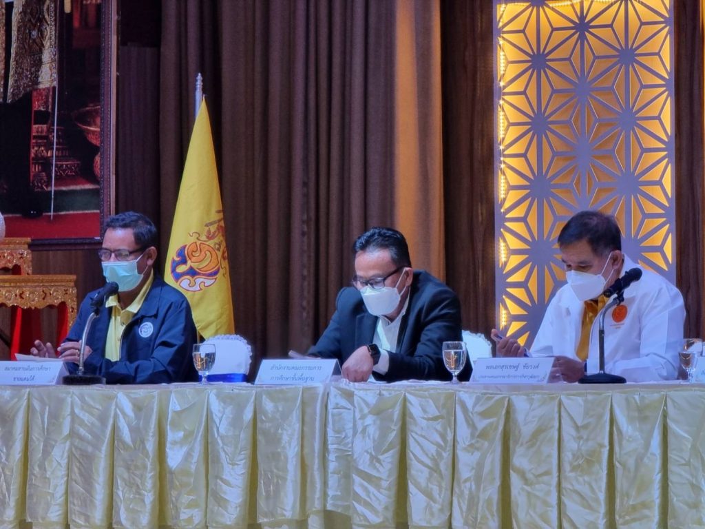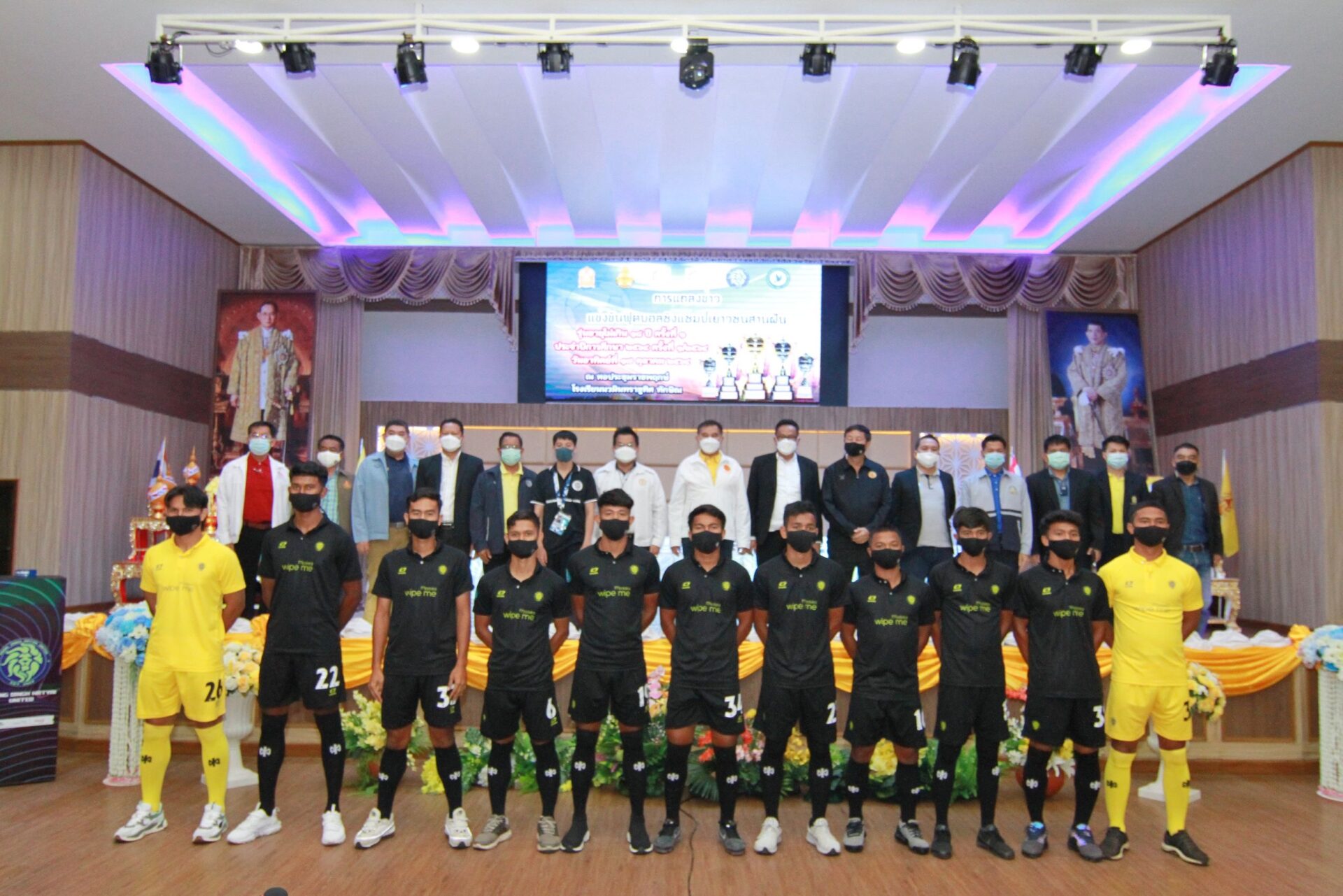 สงขลา-17 ต.ค.64 การแถลงข่าว ฟุตบอลชิงแชมป์เยาวชนสานฝันรุ่นอายุไม่เกิน 18 ปี ครั้งที่ 1 ที่ หอประชุมราชพฤกษ์รร.นวมินทรราชูทิศ ทักษิณ จ.สงขลา โดยมี พล.อ.สุรเชษฐ์ ชัยวงศ์ ประธานกรรมาธิการการกีฬาวุฒิสภา เป็นประธานพร้อมด้วย นาย วัลลพ สงวนนาม รองเลขาฯ สพฐ. , นาย มนัสฌาน์ ชูเชิด เลขาธิการสมาคมสานฝันฯ , นาย วันกล้าขวัญแก้ว นายกสมาคมผู้สื่อข่าวกีฬาออนไลน์ , นาย สราวุธ เดชมณีรัตน์ ผอ.สพก.จชต.สพฐ. , นาย ฌานุวัฒน์ ตัณฑุลลเวส ผอ.สโมสรฟุตบอล ยังสิงห์ หาดใหญ่ ยูไนเต็ด , ดร.จุฑา ติงศภัทิย์ ที่ปรึกษาสโมสรฟุตบอลยังสิงห์ หาดใหญ่ยูไนเต็ด ร่วมกันแถลงข่าว มี คณะ ผู้อำนวยการโรงเรียนจำนวน 12 โรงเรียนที่เข้าร่วมการแข่งขันและนักกีฬาเข้าร่วมงาน