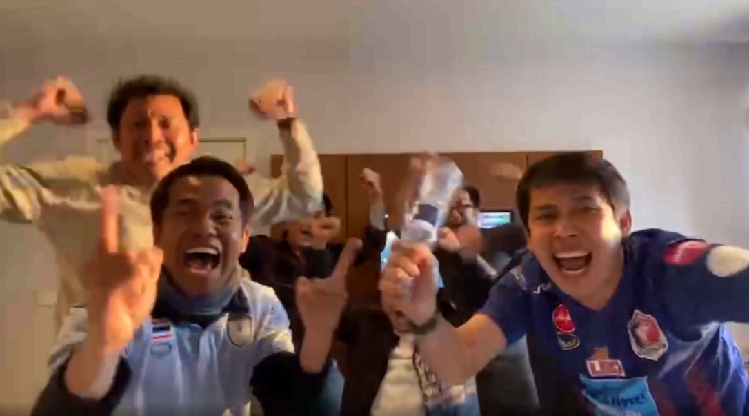 ซึ่งบรรยากาศที่โรงแรมไอบิส ที่พักของนักฟุตบอลทีมไทย ทั้ง “มาดามแป้ง” นวลพรรณ ล่ำซำ นักฟุตบอลและสต๊าฟฟ์โค้ช บรรยากาศนั่งเชียร์ลุ้นทีมลาว และต่างแสดงความดีใจหลังทีมลาวชนะมองโกเลีย ขณะที่บรรยากาศการเชียร์ของนักข่าวที่โรงแรมที่พักในการลุ้นลาว ก็เป็นไปอย่างคึกคักเช่นกัน