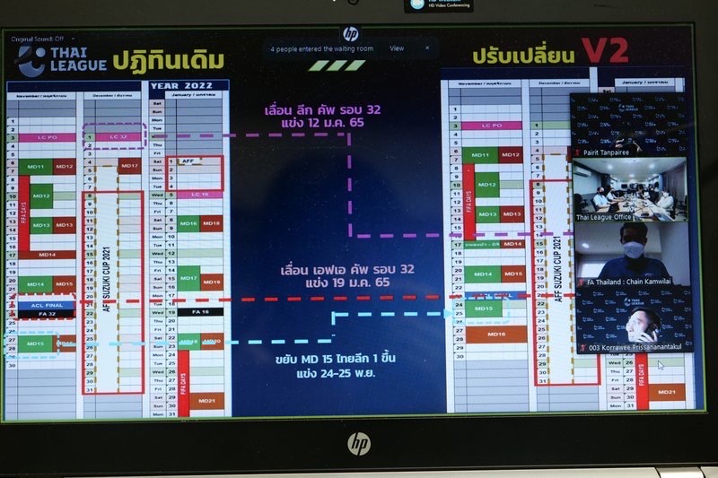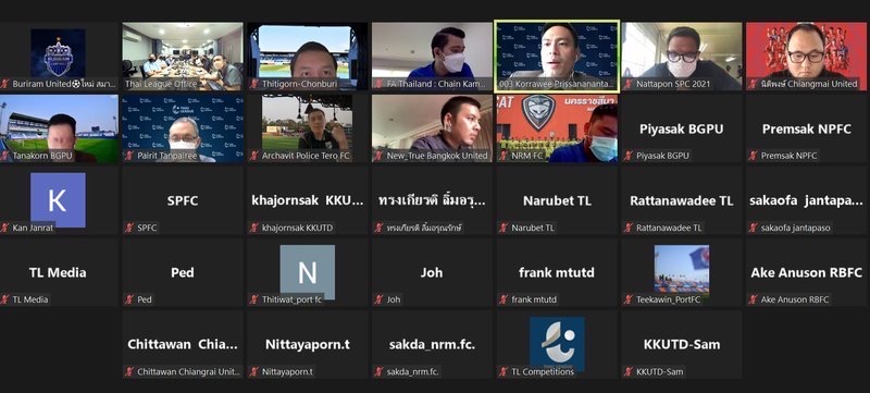 ประชุมออนไลน์ 4 พ.ย.64-บริษัท ไทยลีก จำกัด จัดงานประชุมเพื่อพูดคุยกับตัวแทนของสโมสรในไทยลีก 1 ในเรื่องของการปรับเปลี่ยนปฏิทินการแข่งขัน สำหรับ รีโว่ ไทยลีก ฤดูกาล 2564/65 โดยมี นายกรวีร์ ปริศนานันทกุล รักษาการประธานเจ้าหน้าที่บริหาร บริษัท ไทยลีก จำกัด พร้อมด้วยตัวแทนของสโมสรในไทยลีก 1 เข้าร่วมพูดคุยในงานประชุม