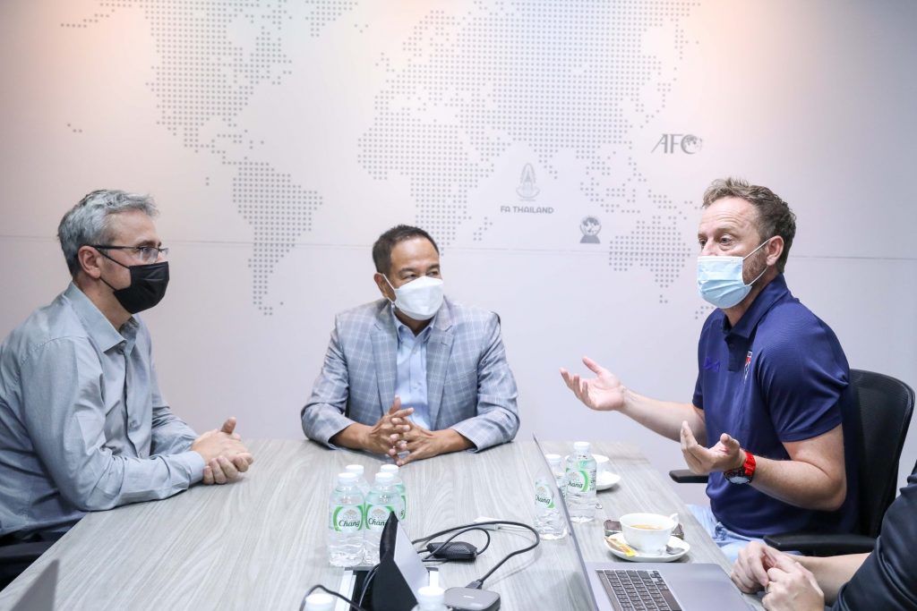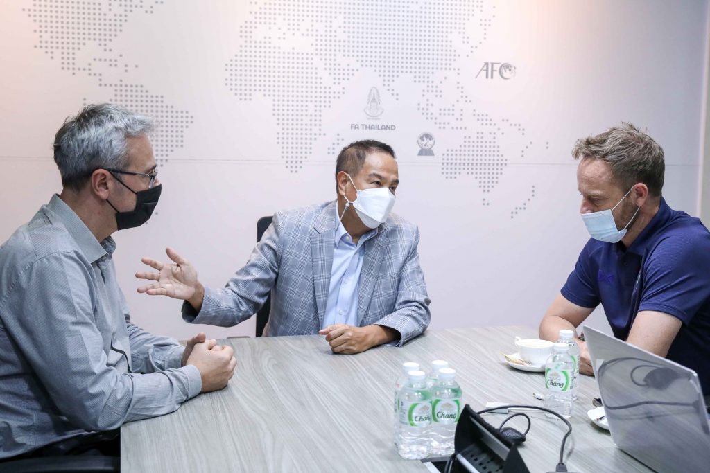 สมาคมฟุตบอลฯ 10 พ.ย.64 สมาคมกีฬาฟุตบอลแห่งประเทศไทยฯ ฝ่ายเทคนิค จัดประชุมเกี่ยวกับแนวทางการพัฒนาทีมฟุตบอลชายทีมชาติไทยชุดใหญ่ โดยการประชุมครั้งนี้นำโดย พล.ต.อ.ดร. สมยศ พุ่มพันธุ์ม่วง นายกสมาคมฯ พร้อมด้วย พาทิศ ศุภะพงษ์ เลขาธิการสมาคมฯ, การ์เลส โรมาโกซา ผู้อำนวยการฝ่ายเทคนิค, มาโน โพลกิ้ง หัวหน้าผู้ฝึกสอนฟุตบอลชายทีมชาติไทยชุดใหญ่, ซัลบาดอร์ บาเลโร การ์เซีย หัวหน้าผู้ฝึกสอนทีมชาติไทยรุ่นอายุไม่เกิน 19 ปี, และเจ้าหน้าที่สมาคมฯที่เกี่ยวข้อง