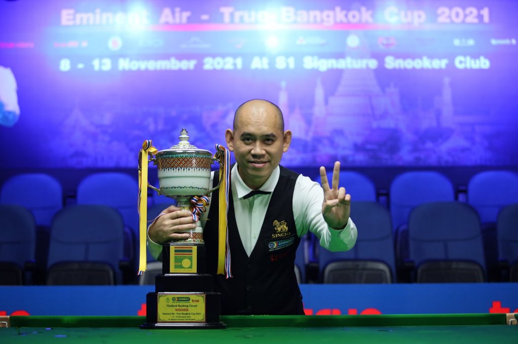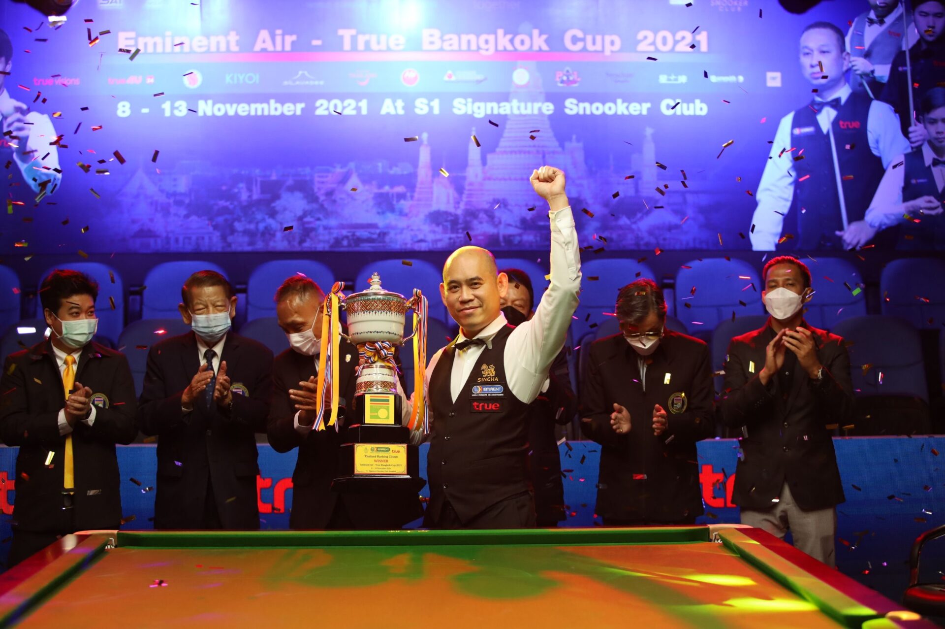 13 พ.ย.64-การแข่งขันสนุ๊กเกอร์อาชีพเก็บสะสมคะแนนปี2564 รายการที่4″อีมิแน้นท์ แอร์ – ทรู กรุงเทพ คัพ”ที่เอสวัน ซิเนเจอร์ สนุ๊กเกอร์ คลับ พุทธมณฑลสาย1 เดินทางมาถึงรอบชิงชนะเลิศ โดยมี พลเอกโชคดี เกตสัมพันธ์ และนายสุนทร จารุมนต์ นายกสมาคมกีฬาบิลเลียดแห่งประเทศไทย เป็นประธาน