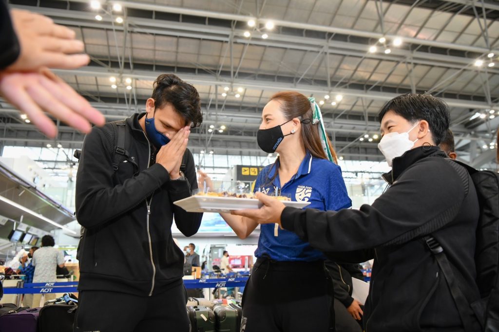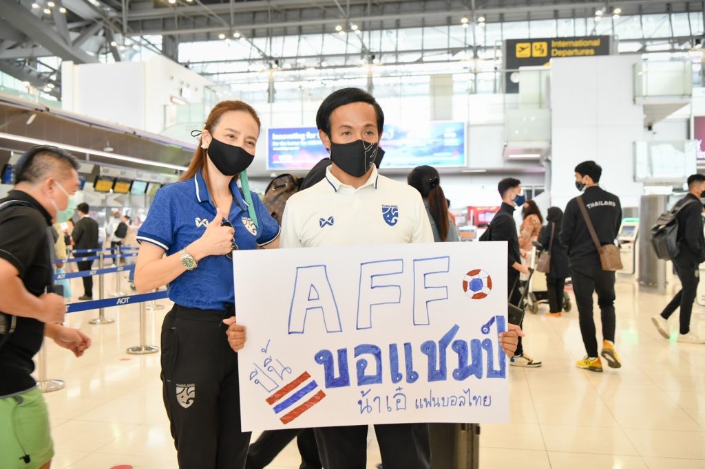 1 ธันวาคม 2564 “ช้างศึก” ทีมฟุตบอลทีมชาติไทยชุดใหญ่ นำโดย มาโน่ โพลกิ้ง หัวหน้าผู้ฝึกสอน ออกเดินทางจากท่าอากาศยานสุวรรณภูมิ ประเทศไทย ด้วยสายการบินสิงคโปร์ แอร์ไลน์ เที่ยวบินเอสคิว 707 เพื่อเข้าร่วมการแข่งขันเอเอฟเอฟ ซูซูกิคัพ 2020 ระหว่างวันที่ 5 ธันวาคม 2564 – 1 มกราคม 2565 โดยอีก 6 นักเตะจากต่างประเทศ จะบินตรงไปสมทบสิงคโปร์