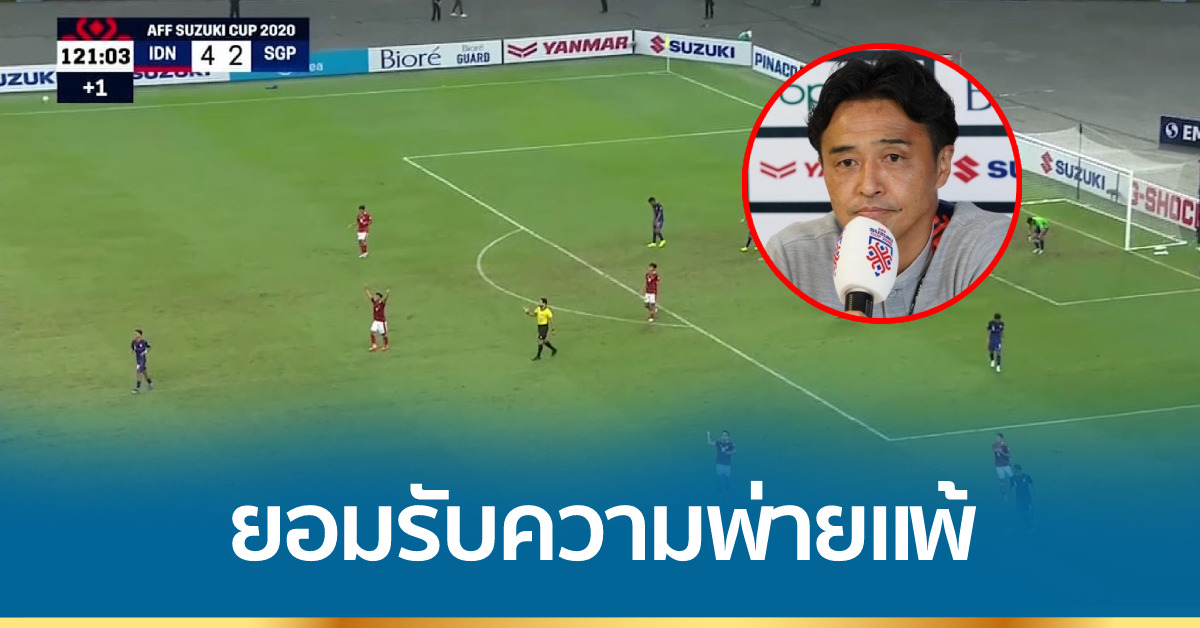 สิงคโปร์ 26 ธ.ค.-กุนซือชาวญี่ปุ่น ของสิงคโปร์ ยอมรับความพ่ายแพ้ ไม่มีข้อแก้ตัว หลังทีมที่เหลือผู้เล่น 8 คน แพ้ อินโดนีเซีย 2-4 ฟุตบอลชิงแชมป์อาเซียน “เอเอฟเอฟ ซูซูกิคัพ 2020” รอบรองชนะเลิศ นัดที่ 2