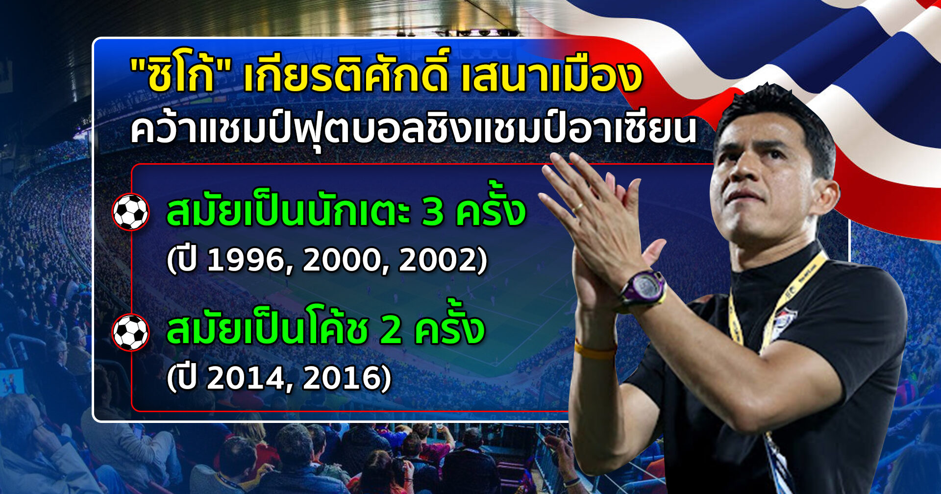 มาฟังฮีโร่กองหน้า “ซิโก้” เกียรติศักดิ์ เสนาเมือง ชุดแชมป์อาเซียน 3 สมัย และอดีตกุนซือ พาทีมไทยคว้าแชมป์ 2 สมัย ในย้อนรอยฟุตบอลชิงแชมป์อาเซียน