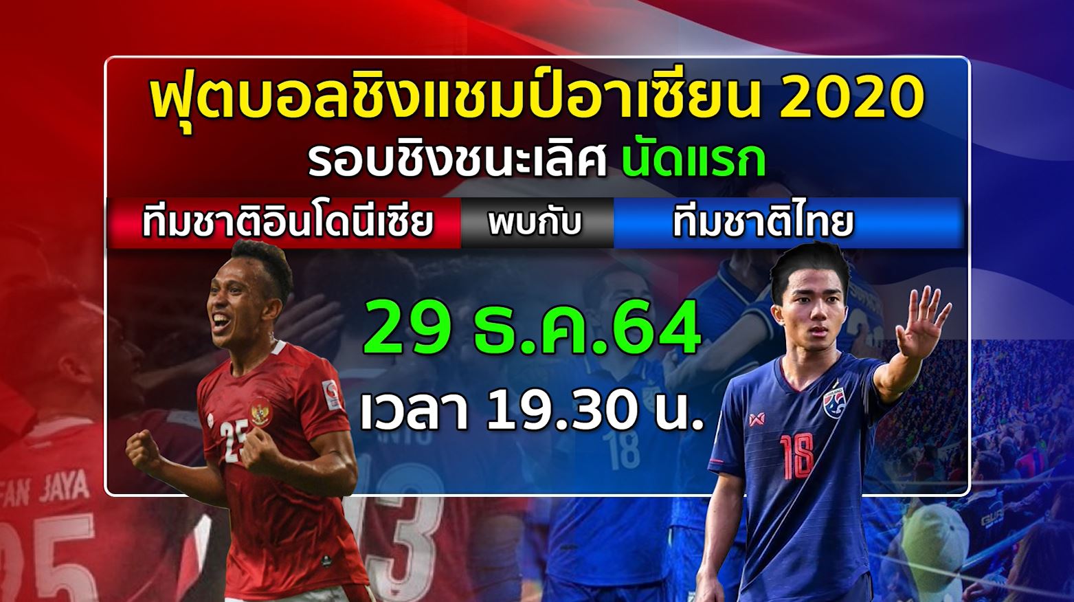 ฟุตบอลชิงแชมป์อาเซียน เอเอฟเอฟ ซูซูกิ คัพ 2020 เดินทางมาถึงรอบชิงชนะเลิศ นัดแรก วันนี้ เวลา 19.30 น. ทีมชาติไทย แชมป์ 5 สมัย อันดับที่ 116 ของโลก พบ อินโดนีเซีย รองแชมป์ 5 สมัย อันดับ 164 ของโลก สำหรับทีมชาติไทย ผ่านรอบรองชนะเลิศมาได้ด้วยการเอาชนะเวียดนาม แชมป์เก่า รวมผล 2 นัดด้วยสกอร์รวม 2-0 โดยนัดแรก ชนะ 2-0 จาก 2 ประตูของ “เจ” ชนาธิป สรงกระสินธ์ กัปตันทีม ส่วนนัดที่ 2 เสมอ 0-0 ส่วนอินโดนีเซีย ที่ยังไม่เคยได้แชมป์รายการนี้เลยจากการเข้าชิง 5 ครั้ง ผ่านรอบรองชนะเลิศมาได้ด้วยการเอาชนะสิงคโปร์ นัดแรกเสมอ 1-1 ก่อนนัดที่ 2 จะชนะในช่วงต่อเวลาพิเศษ 4-2