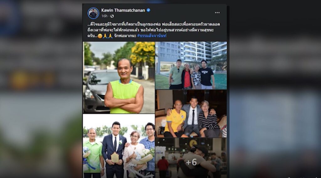 “ดีใจและภูมิใจมากที่เกิดมาเป็นลูกของพ่อ พ่อเสียสละเพื่อครอบครัวมาตลอด ถึงเวลาที่พ่อจะได้พักผ่อนแล้ว ขอให้พ่อไปอยู่บนสวรรค์อย่างมีความสุขนะครับ รักพ่อมากนะ” คือ คำกล่าว และโพสต์เฟซบุ๊กของตองหลังจบเกมที่ออกมาทั้งน้ำตา ซึ่งกวินทร์ยังเหลือภารกิจในการทำหน้าที่เพื่อชาติอีก 1 เกม ในนัดชิงชนะเลิศนัดที่ 2 วันที่ 1 มกราคม ปีหน้า ก่อนจะกลับมาทำหน้าที่ลูกชายของคุณพ่อประมวล ซึ่งตองรักอย่างสุดหัวใจ โดยกำหนดงานสวดอภิธรรมจะมีขึ้นในวันที่ 3 มกราคม ที่วัดศรีเรืองบุญ จังหวัดนนทบุรี