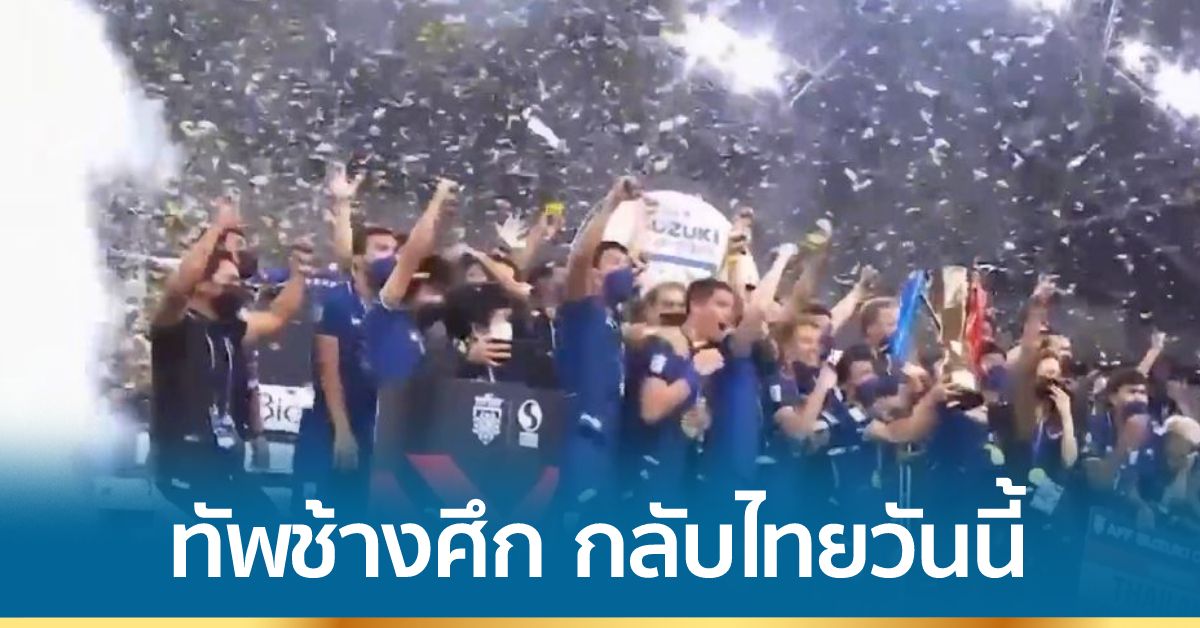 สิงคโปร์ 2 ม.ค. – “ช้างศึก” ทีมชาติไทย จะเดินทางกลับไทยวันนี้ หลังคว้าแชมป์ “เอเอฟเอฟ ซูซูกิ คัพ 2020” ที่ประเทศสิงคโปร์ ไปครองอย่างยิ่งใหญ่ ชนะทีมชาติอินโดนีเซีย นัดชิงชนะเลิศ พร้อมกับเป็นแชมป์ไร้พ่ายครั้งที่ 3