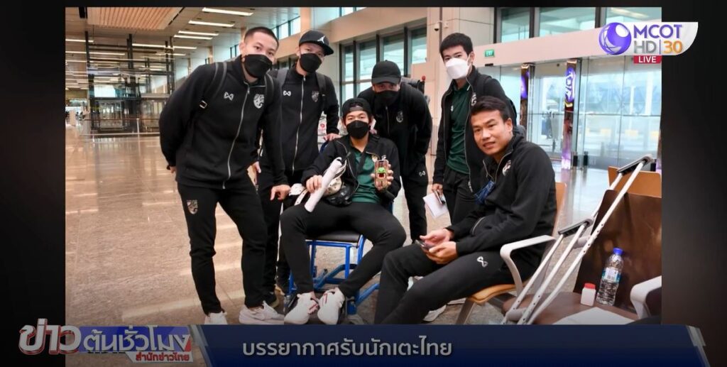 ส่วนบรรยากาศที่ท่าอากาศยานสุวรรณภูมิขณะนี้พร้อมสำหรับการต้อนรับฮีโร่ทีมชาติไทยทั้งหมด โดยมีสื่อมวลชนมารอจำนวนมาก หลังจากลงเครื่องแล้วทีมช้างศึก พร้อมด้วยมาดามแป้ง จะออกมาพบปะให้สัมภาษณ์กับสื่อมวลชน โดยมีการจัดพื้นที่เว้นระยะห่าง ท่ามกลางเจ้าหน้าที่สนามบินที่มาดูแลความเรียบร้อย จากนั้นทั้งคณะเข้าสู่การกักตัว State quarantine ตามมาตรการของกระทรวงสาธารณสุขต่อไป.-สำนักข่าวไทย