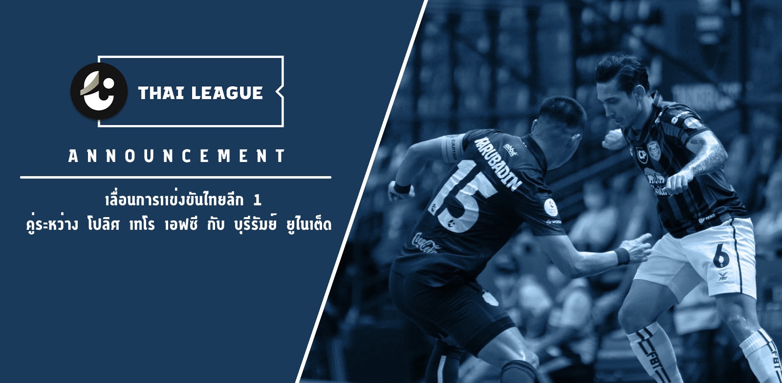 6 ม.ค. 2565-บริษัท ไทยลีก จำกัด ขอประกาศเลื่อนการแข่งขัน รีโว่ ไทยลีก 2021/22 คู่ระหว่าง โปลิศ เทโร เอฟซี พบ บุรีรัมย์ยูไนเต็ด ในวันที่ 8 มกราคม 2565 ออกไป