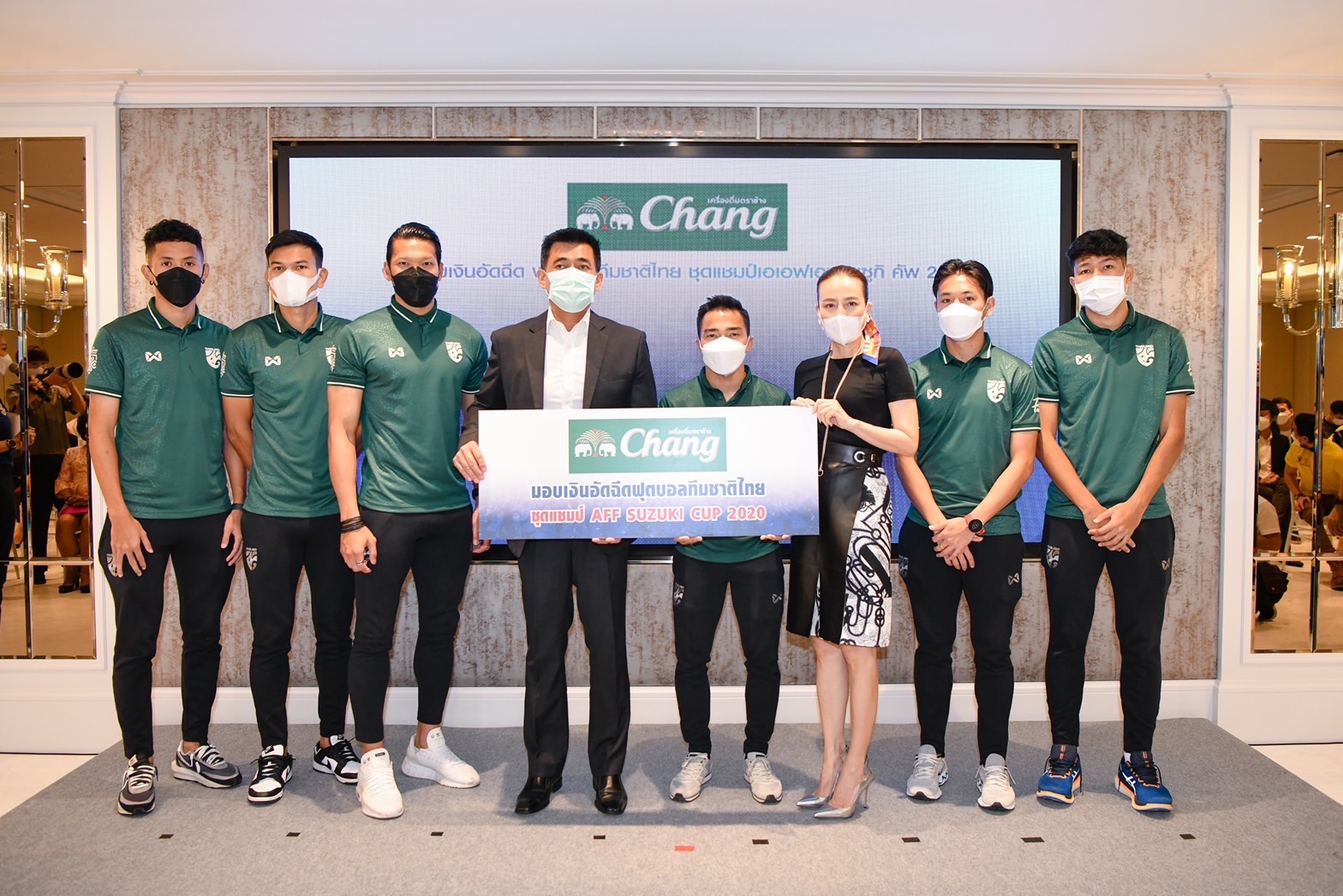 นายสุรพล อุทินทุ ผู้บริหารสำนักประสานงานภายนอก บริษัท ไทยเบฟเวอเรจ จำกัด (มหาชน) โดยเครื่องดื่มตราช้าง ร่วมมอบเงินสนับสนุนทีมชาติไทย เพื่อเป็นขวัญและกำลังใจให้ “ทัพช้างศึก” หลังคว้าแชมป์เอเอฟเอฟ ซูซูกิ คัพ 2020 เป็นสมัยที่ 6 ได้สำเร็จ โดยมีคุณนวลพรรณ ล่ำซำ ผู้จัดการทีมฟุตบอลทีมชาติไทย เป็นผู้รับมอบ
