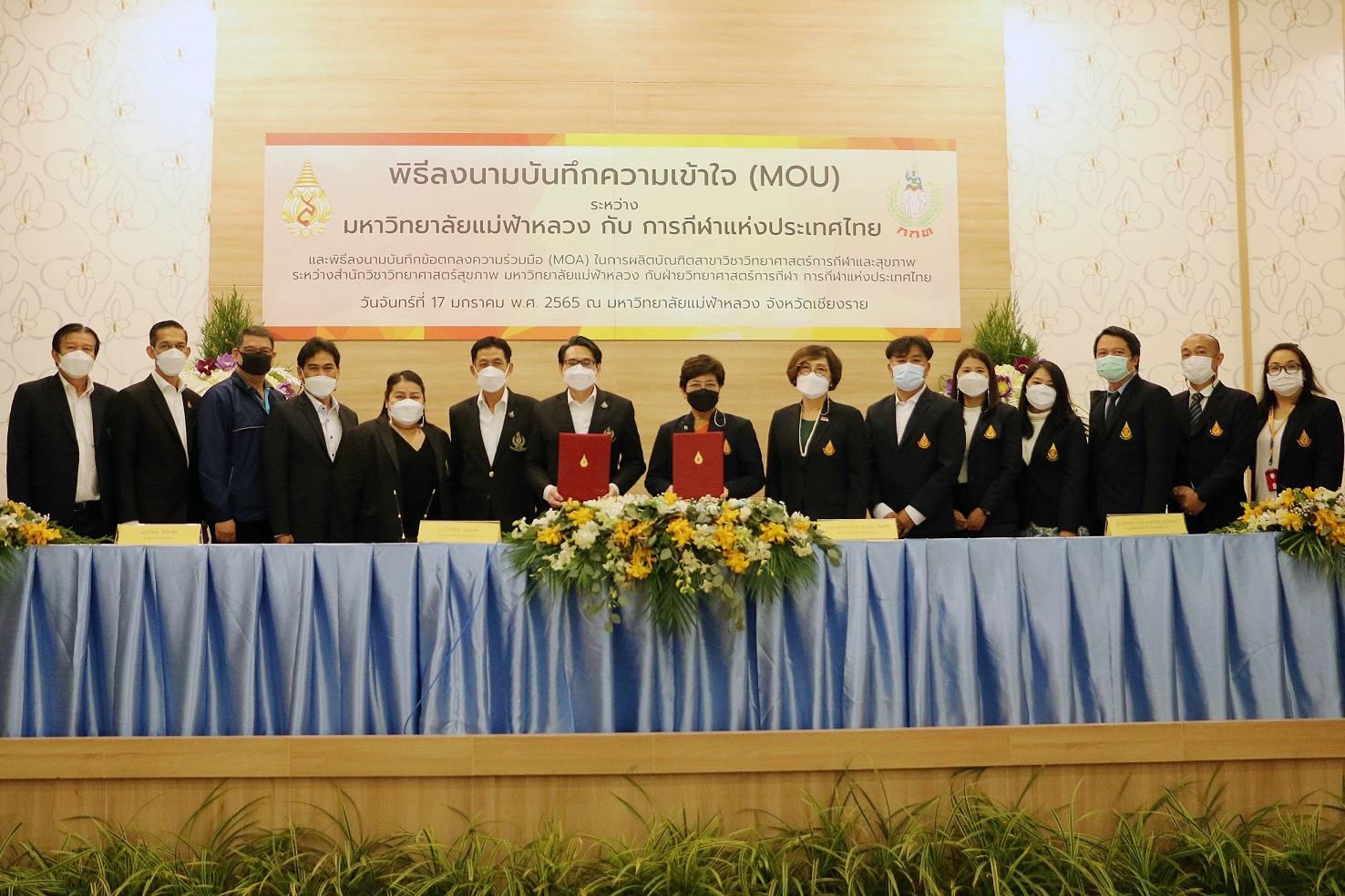 ระหว่าง การกีฬาแห่งประเทศไทย กับ มหาวิทยาลัยแม่ฟ้าหลวง ณ ห้องคำมอกหลวง มหาวิทยาลัยแม่ฟ้าหลวง เมื่อวันที่ 17 มกราคม 2565 ที่ผ่านมา