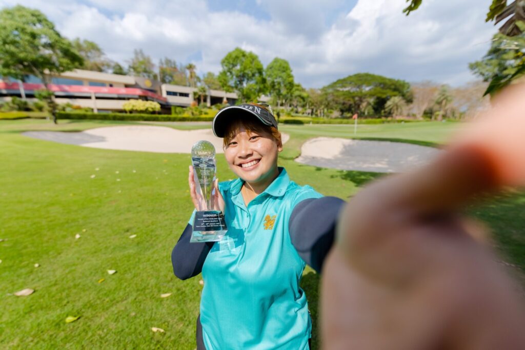 ส่วน”โปรมายด์” ตรีฉัฐ จีนกลับ วัย 26 ปี มาเร่งเครื่องวันสุดท้าย เก็บเพิ่ม 6 อันเดอร์พาร์ 66 โดยไม่เสียโบกี้ตลอดวัน สกอร์รวม 6 อันเดอร์พาร์ 138 ได้อันดับที่ 2 แพ้ “โปรพราว” แค่ 1 สโตรก ขณะที่ “ซิม” ณัฐกฤตา วงศ์ทวีลาภ นักกอล์ฟสมัครเล่นดาวรุ่งทีมชาติไทย วัย 19 ปี คว้าอันดับ 3 ร่วมกับนักกอล์ฟรุ่นพี่อย่าง “โปรกิฟท์” เบญญาภา นิภัทร์โสภณ และปวริศา ยกทวน สกอร์รวม 2 อันเดอร์พาร์ 142